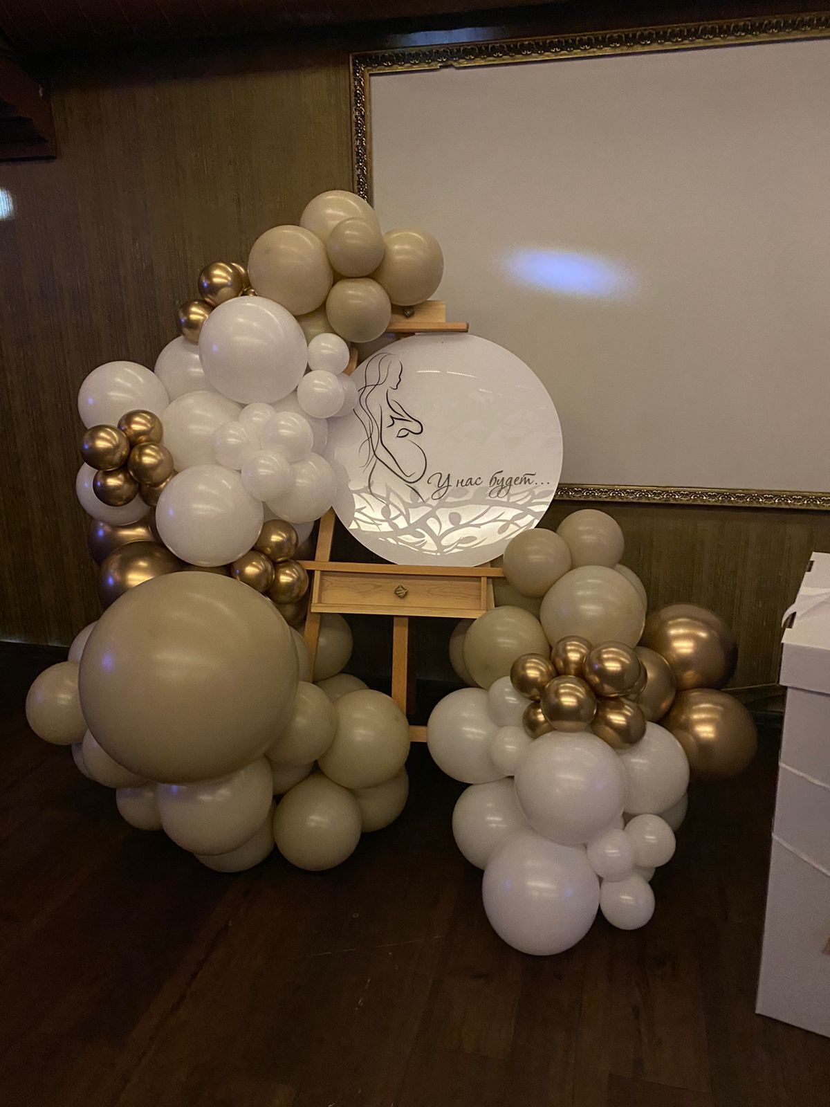 К фотозоне можно заказать коробку-сюрприз или гендер-шар