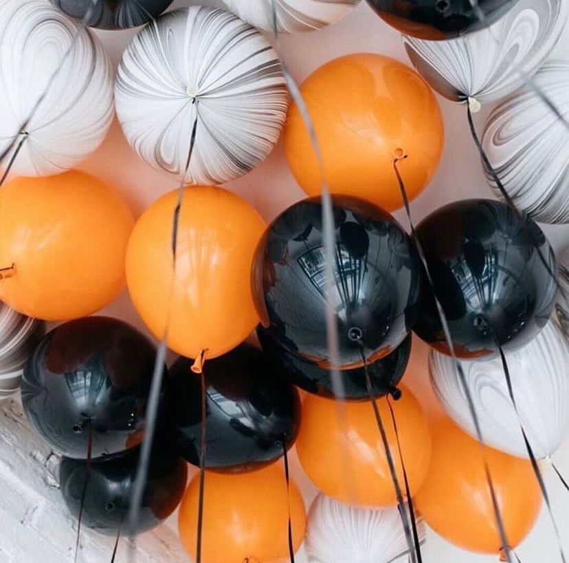 • Шары под потолок (8 агатов, 14 однотонных в гамме оранжевый/черный)