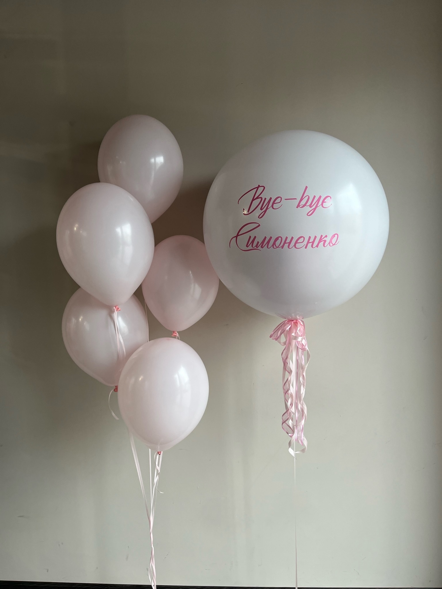 • Фонтан из 5 шаров розовый макарунс