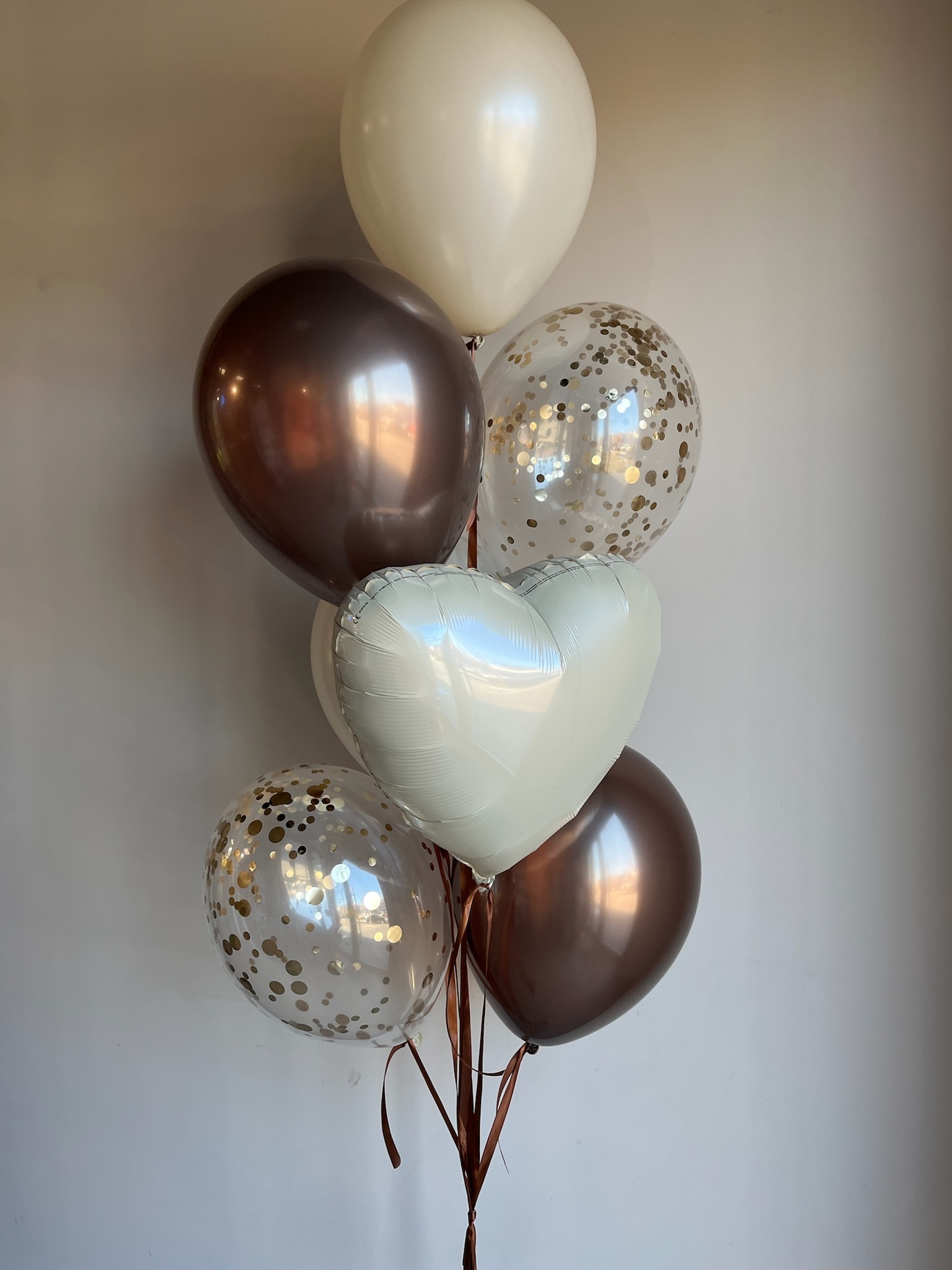 Фонтан из 7 шаров (2 хром, 2 с конфетти, 2 обычных, сердце)