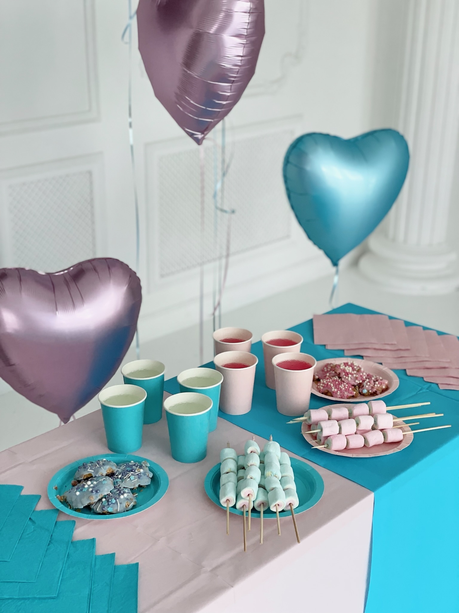 • 10 сердец на индивидуальных грузиках (5 голубых, 5 розовых)
