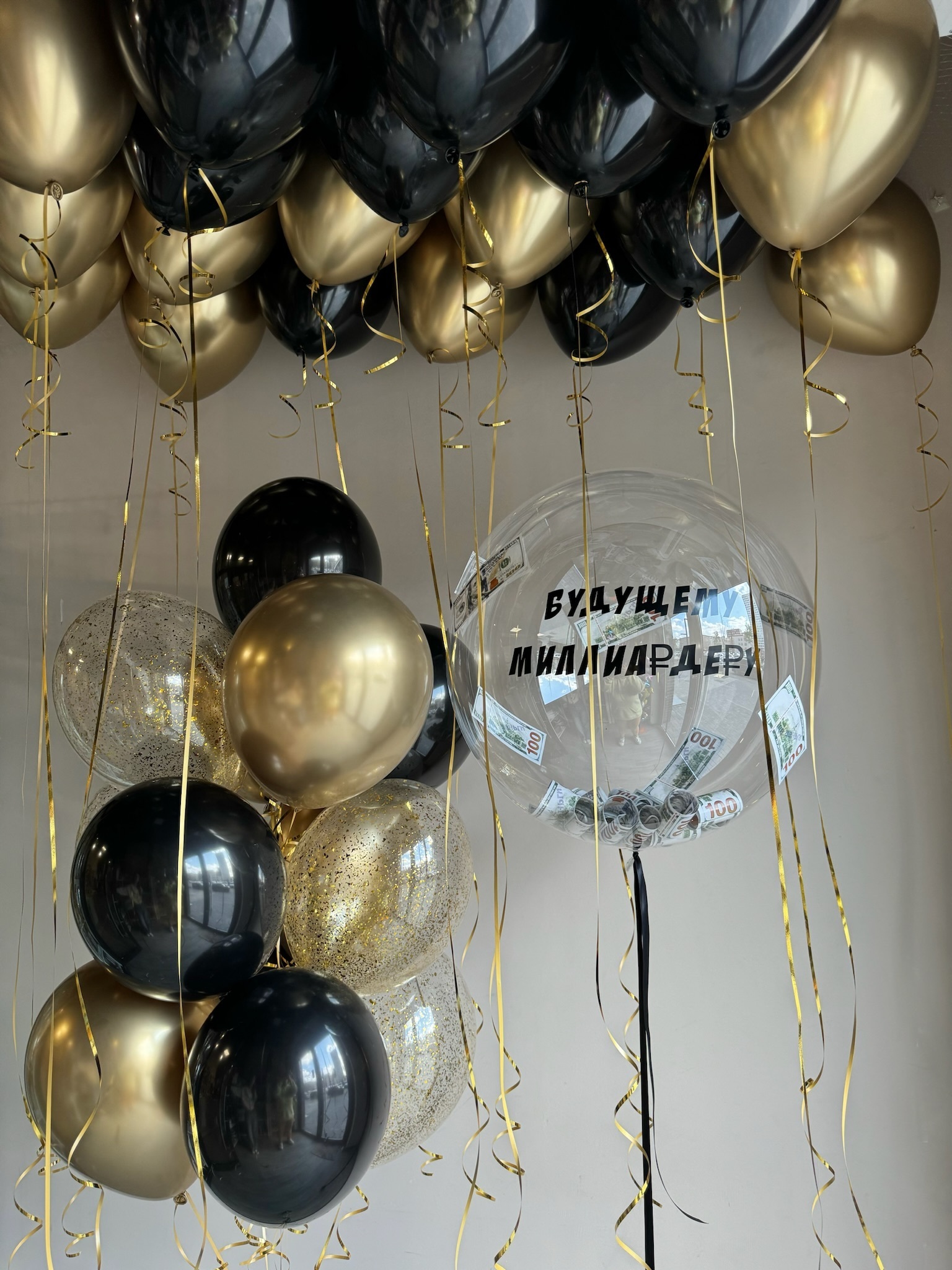 20 шаров под потолок (10 черных, 10 хром золото)