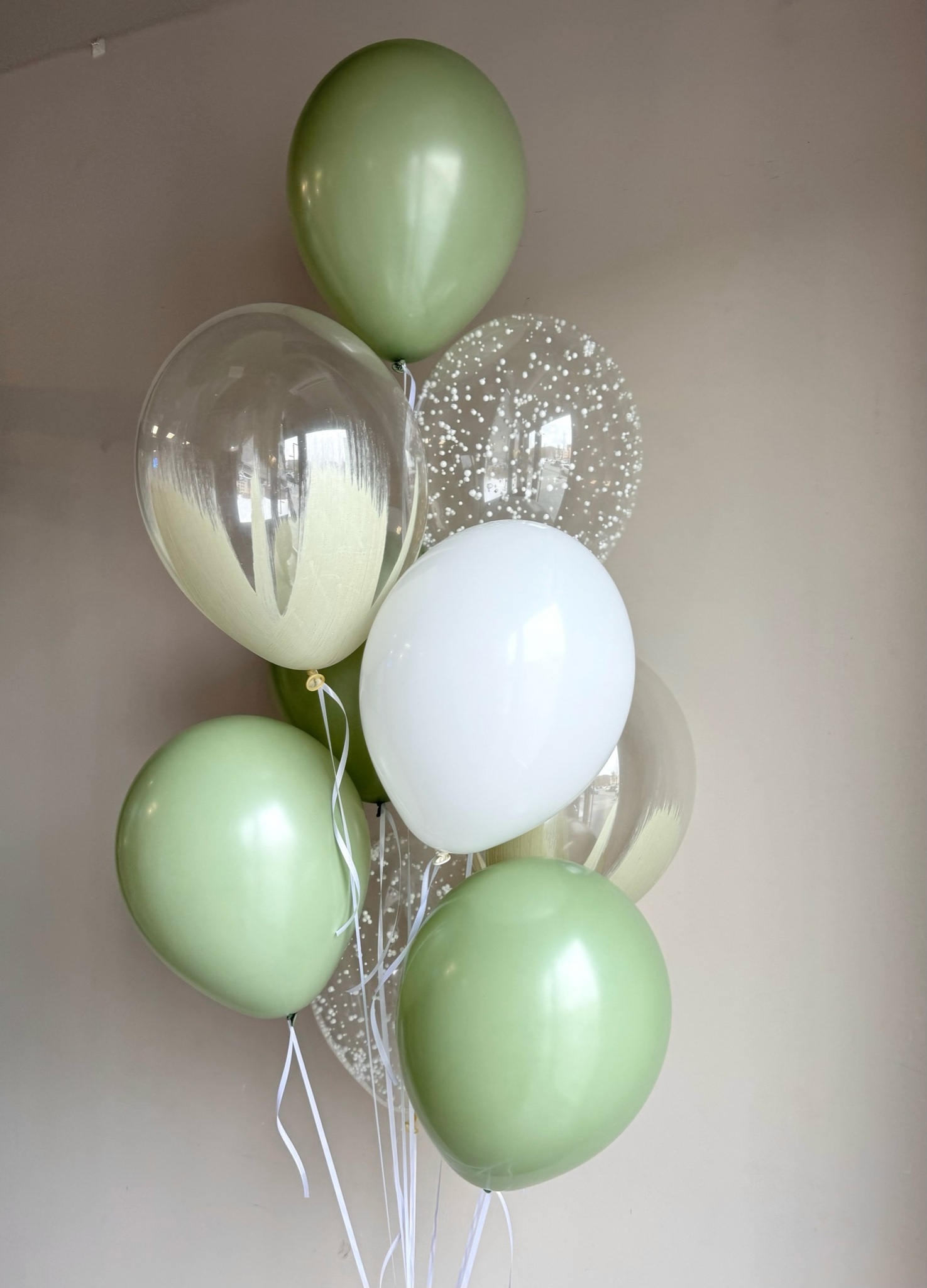 Фонтан из 9 шаров (5 обычных, 2 браш, 2 с конфетти)