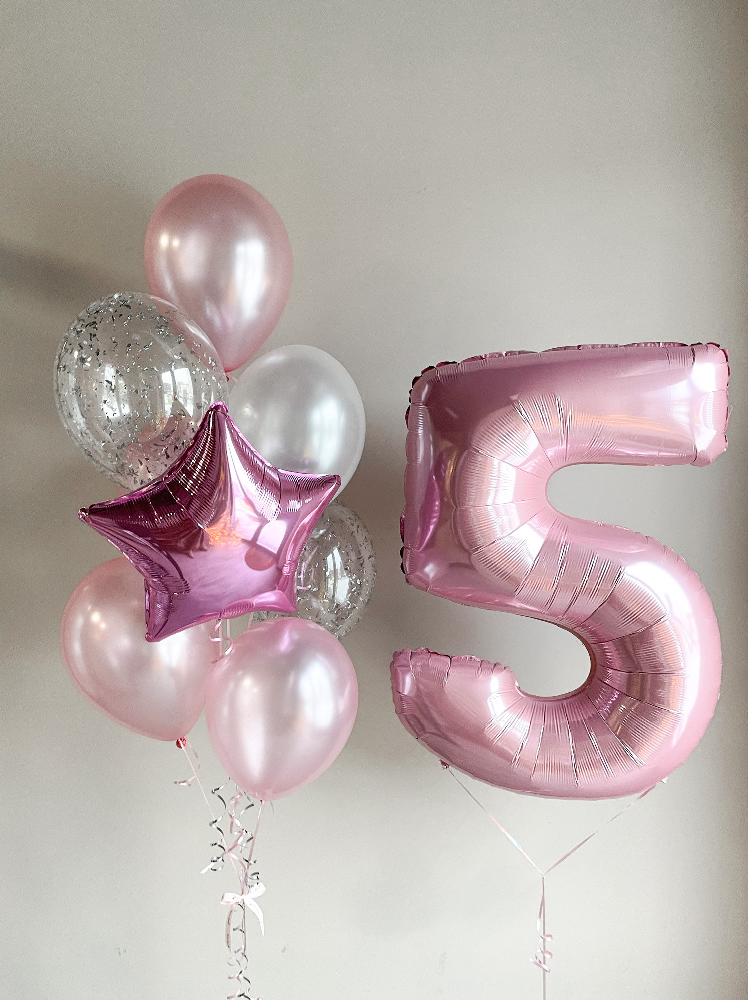 - Фонтан из 8 шаров: звезда, 2 с конфетти и 5 однотонных.