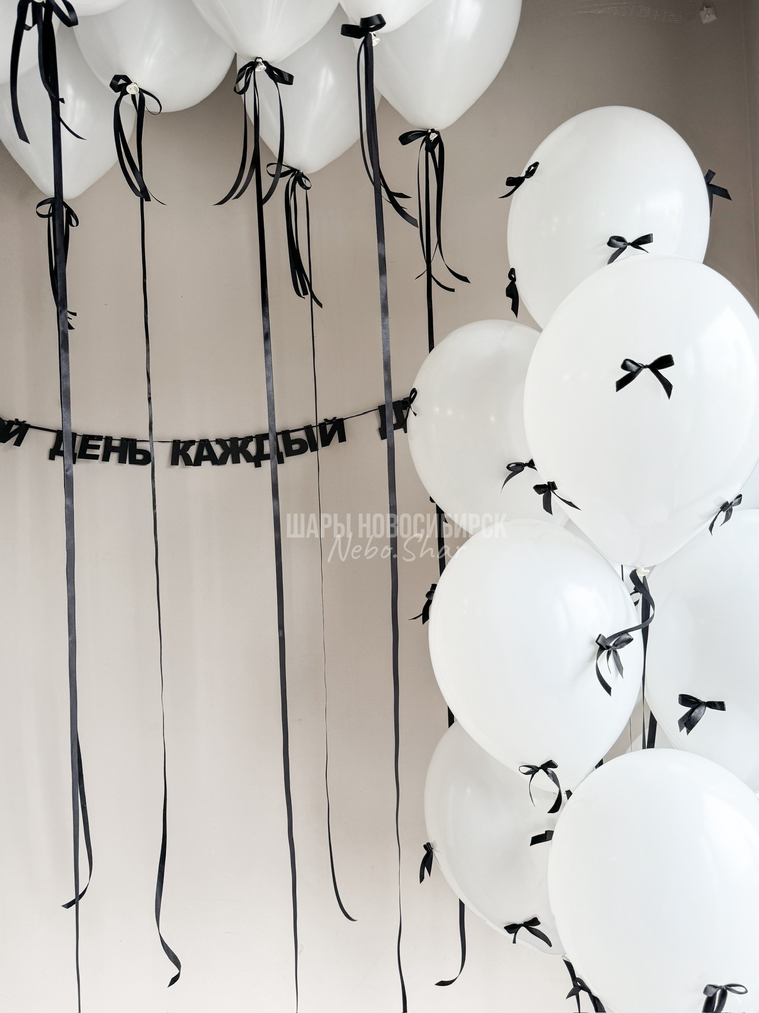 10 шаров под потолок с бантиками