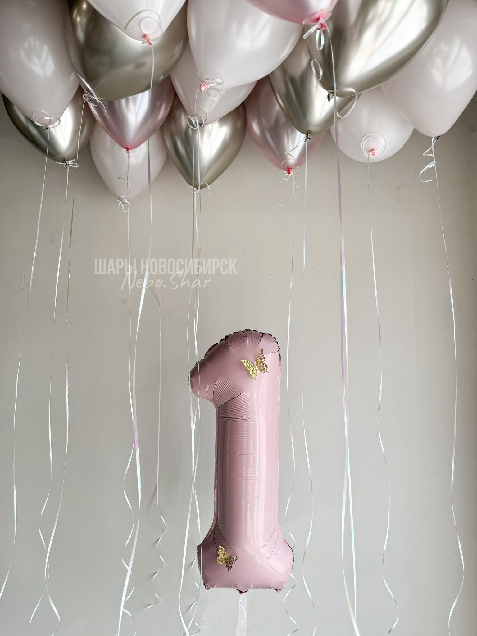 • 15 шаров под потолок (5 хром Шампань, 4 пыльная Роза, 3 розовый перламутр, 3 розовый макарунс)