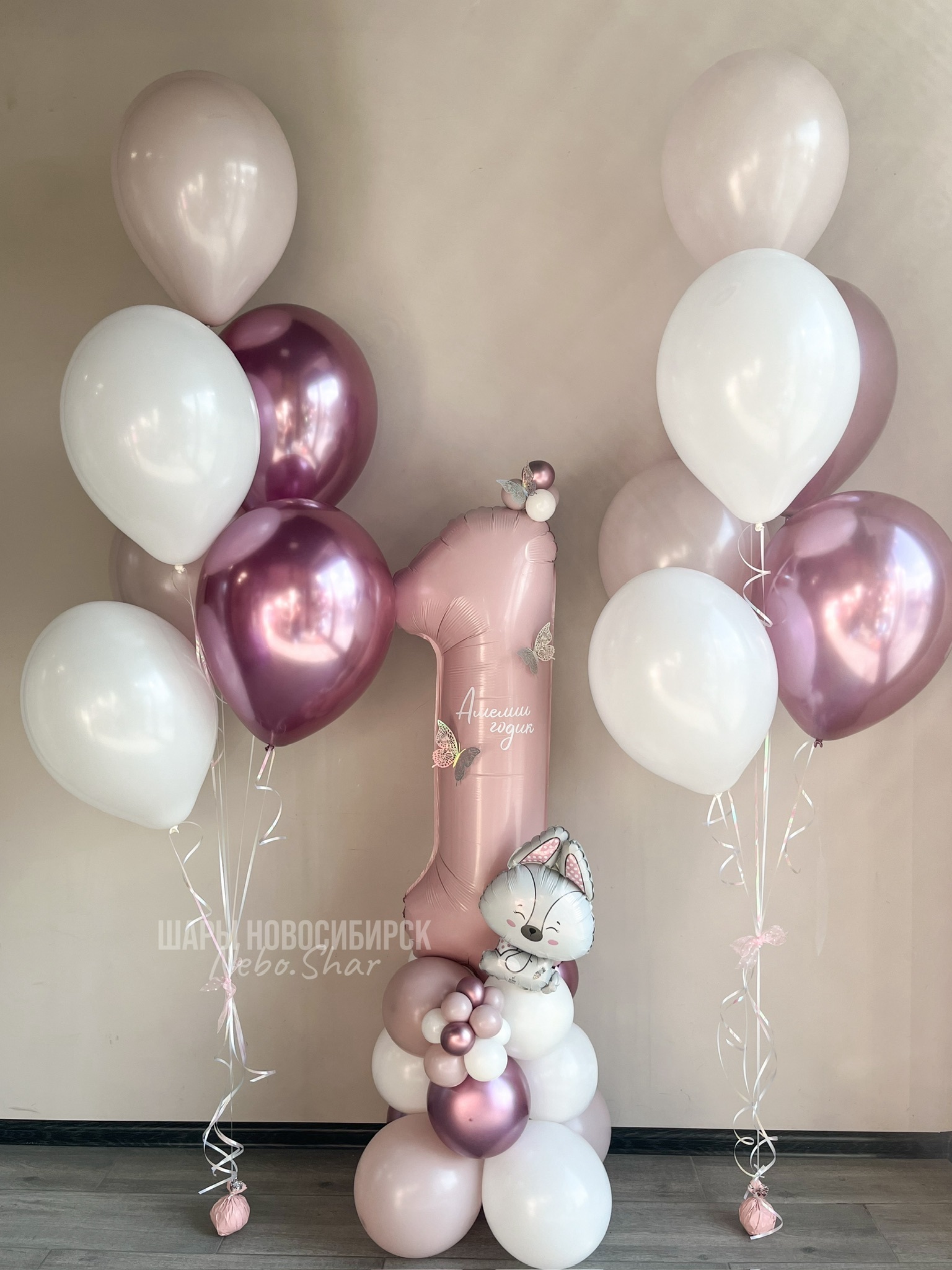 • Два фонтана по 6 Шаров (2 хром фламинго, 2 белых, 2 пыльная Роза)