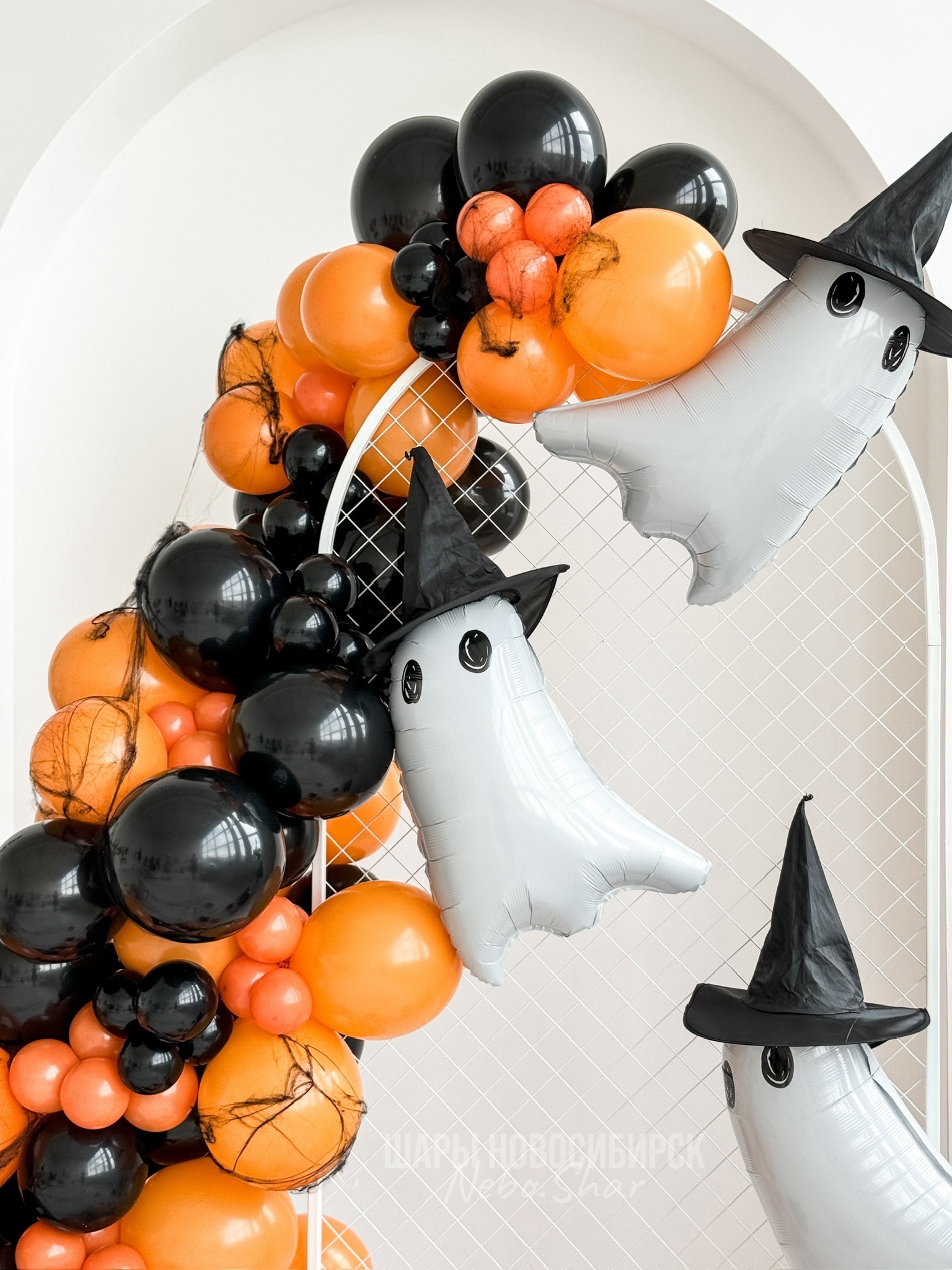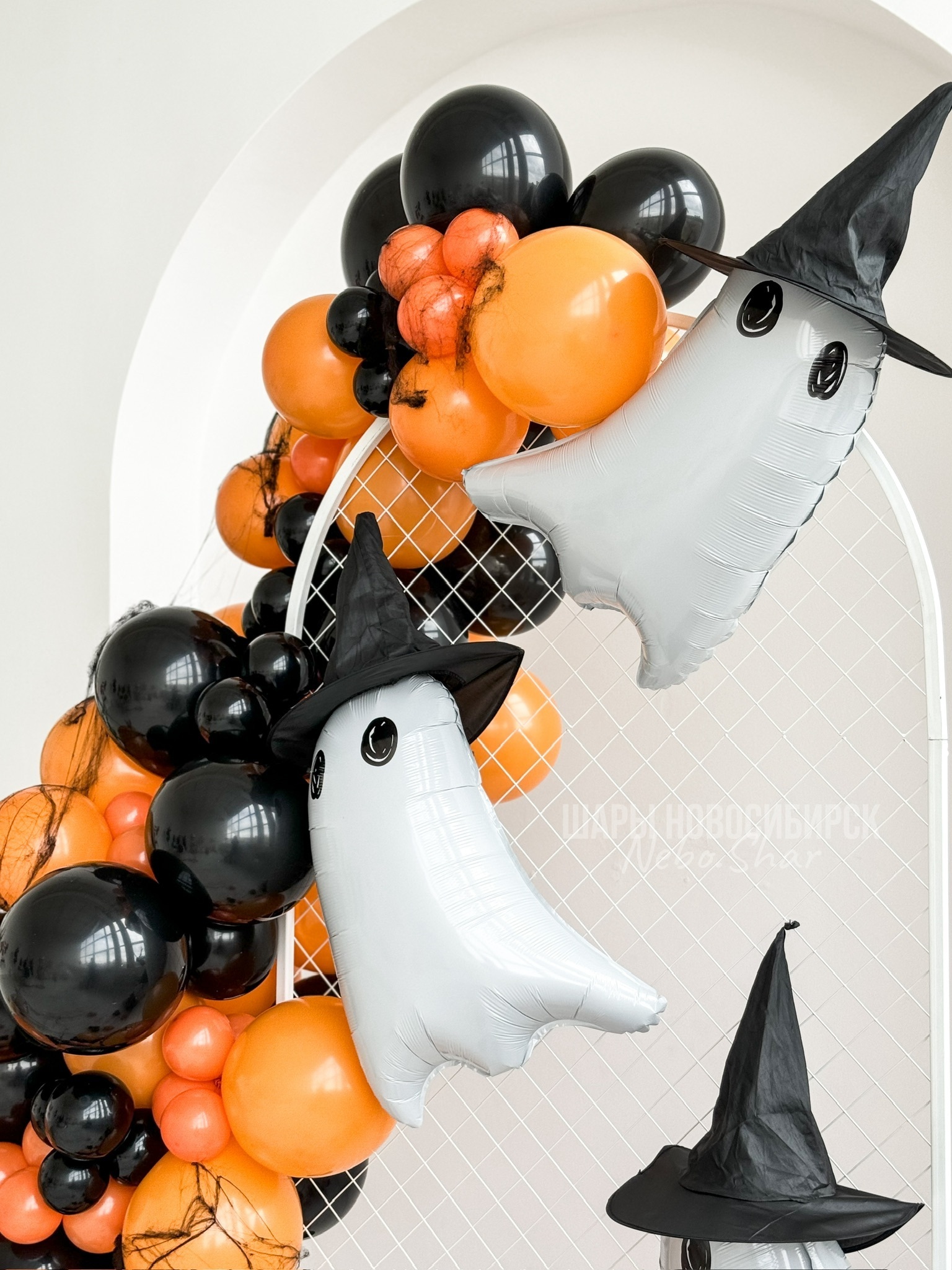 • Фотозона на Хэллоуин с привидениями в шляпах