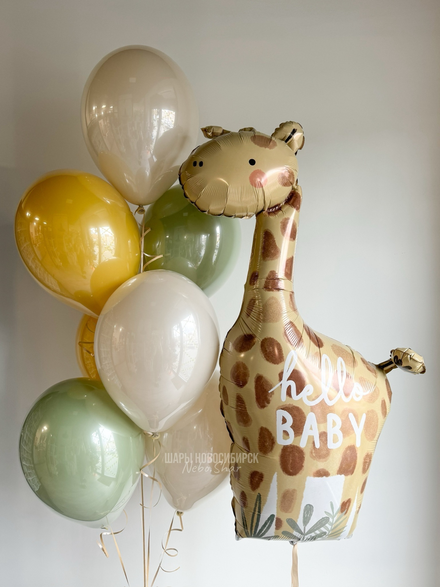 • Фонтан из 7 шаров дабл стафф (3 белый песок, 2 эвкалипт, 2 горчица)