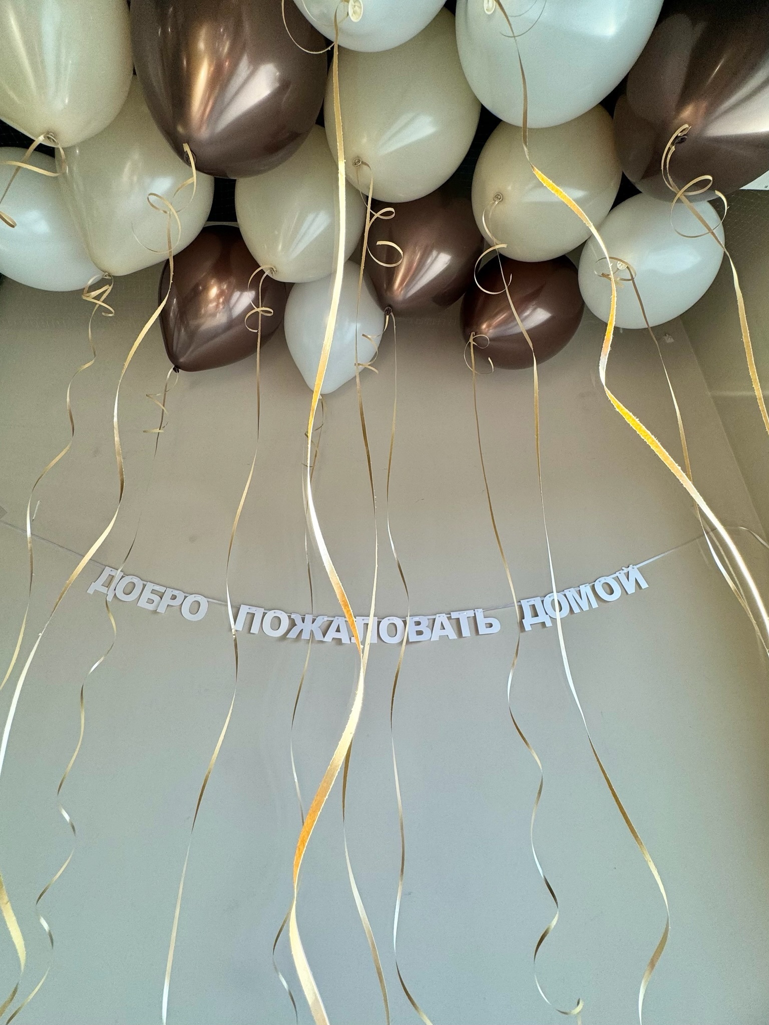 • 15 Шаров под потолок (5 хром трюфель, 5 белый песок, 5 белых)