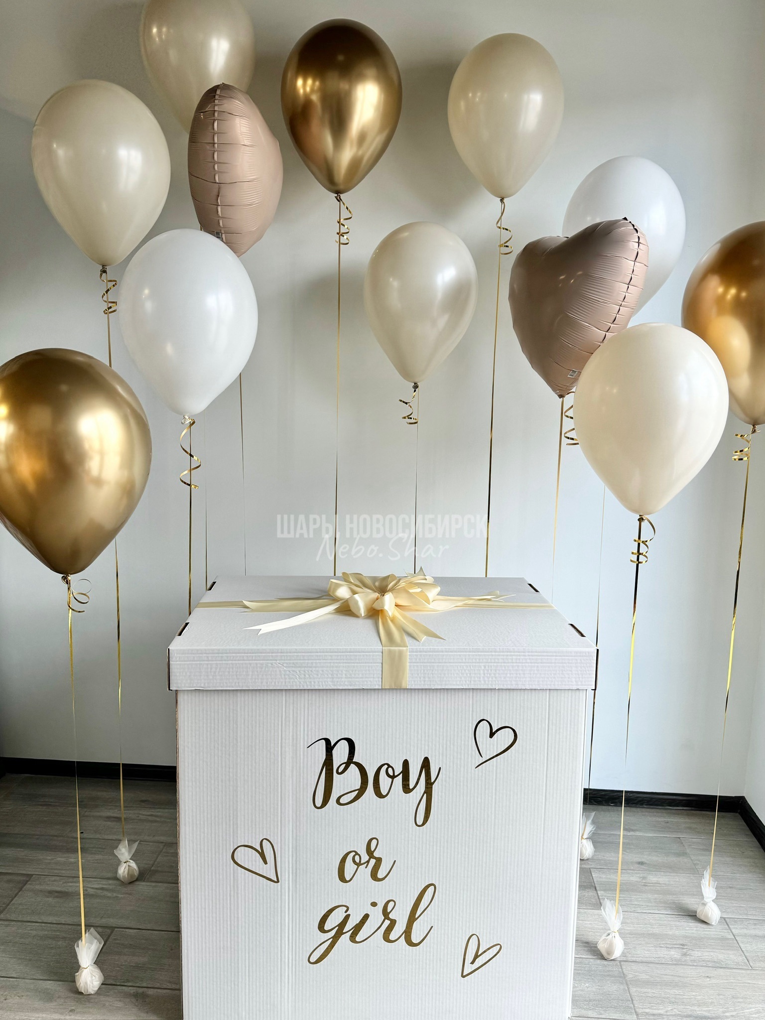 • 12 Шаров на индивидуальных грузиках (2 кремовых сердца 45 см, 3 хром золото, 5 белый песок, 2 белых)