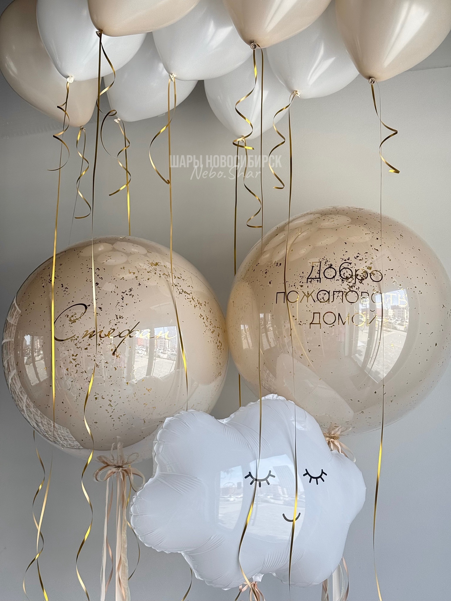 • 9 Шаров под потолок (5 белых, 4 белый песок)