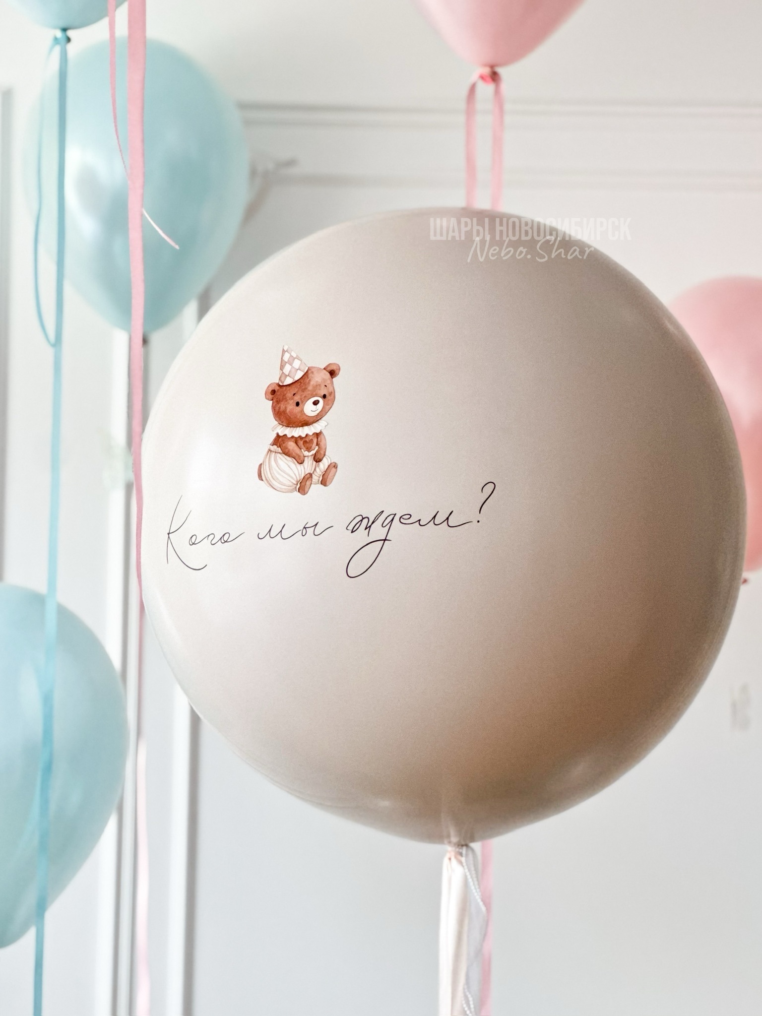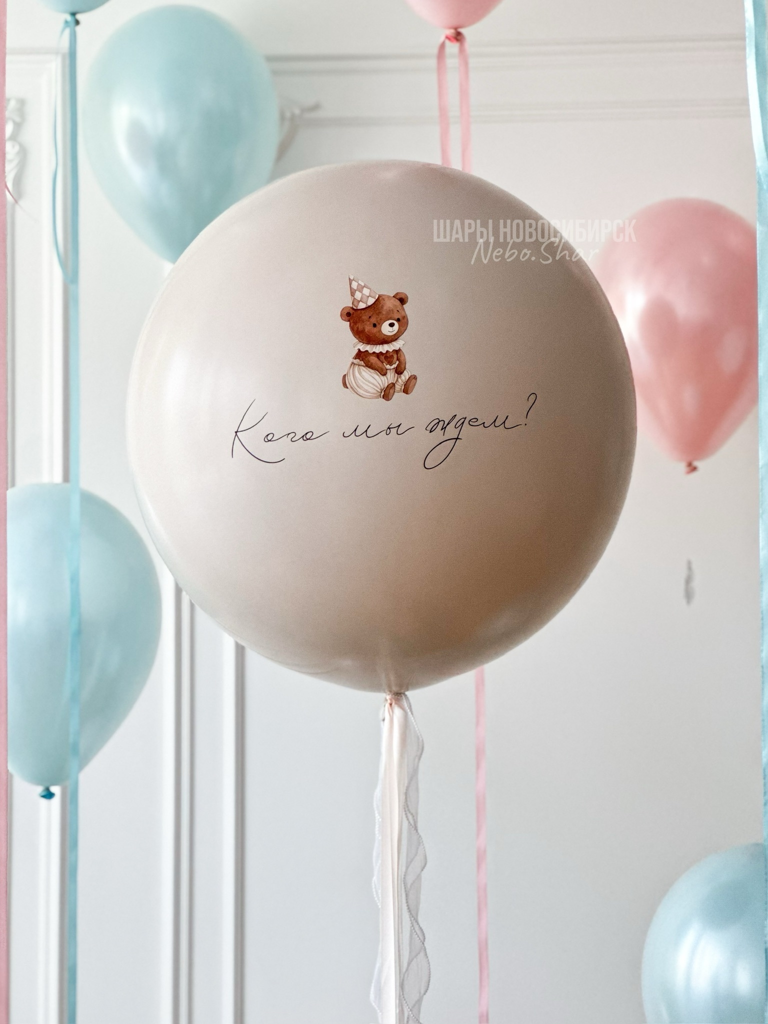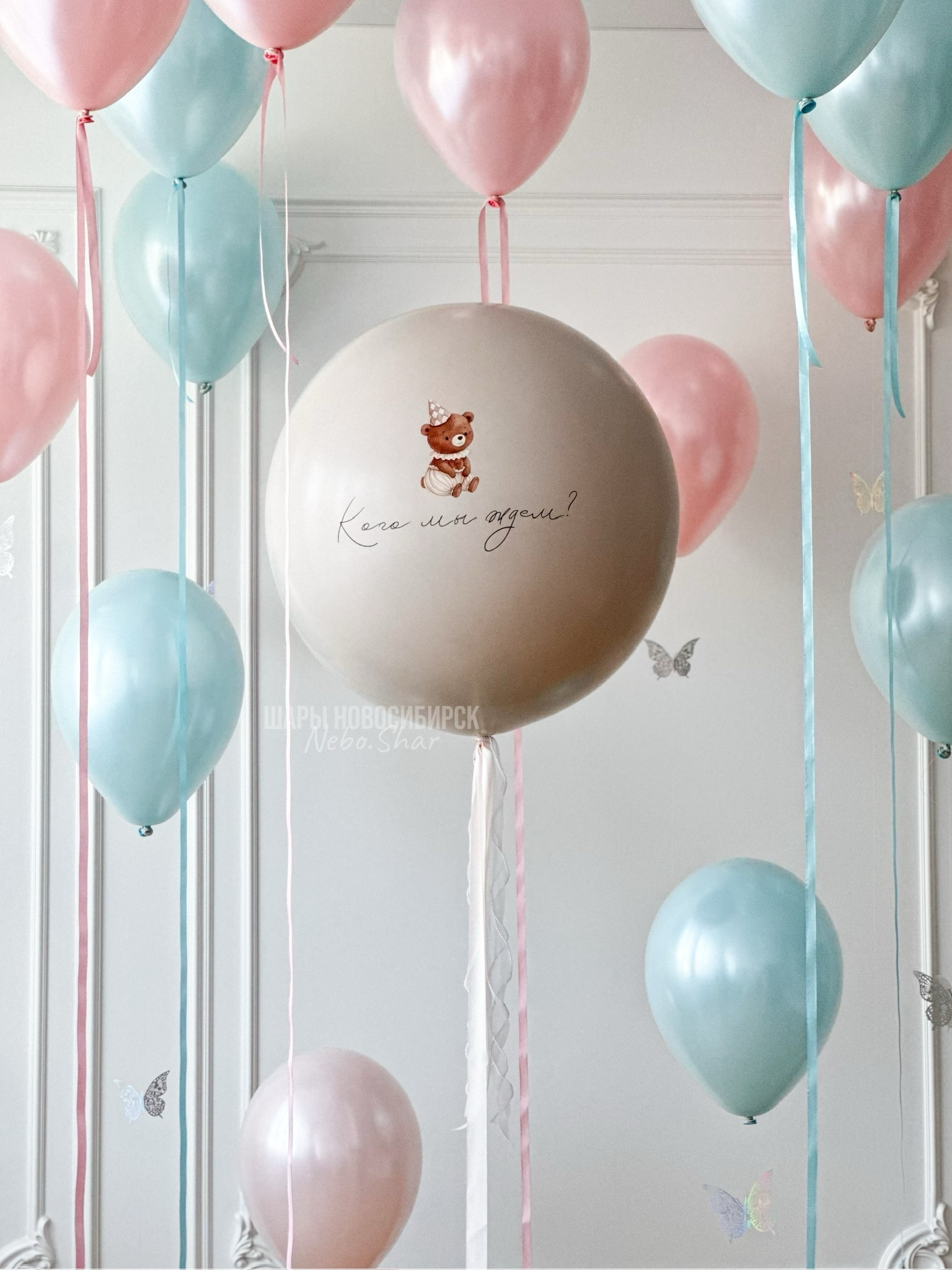 • Двойной гендерный шар с перьями внутри, надписью и наклейкой
