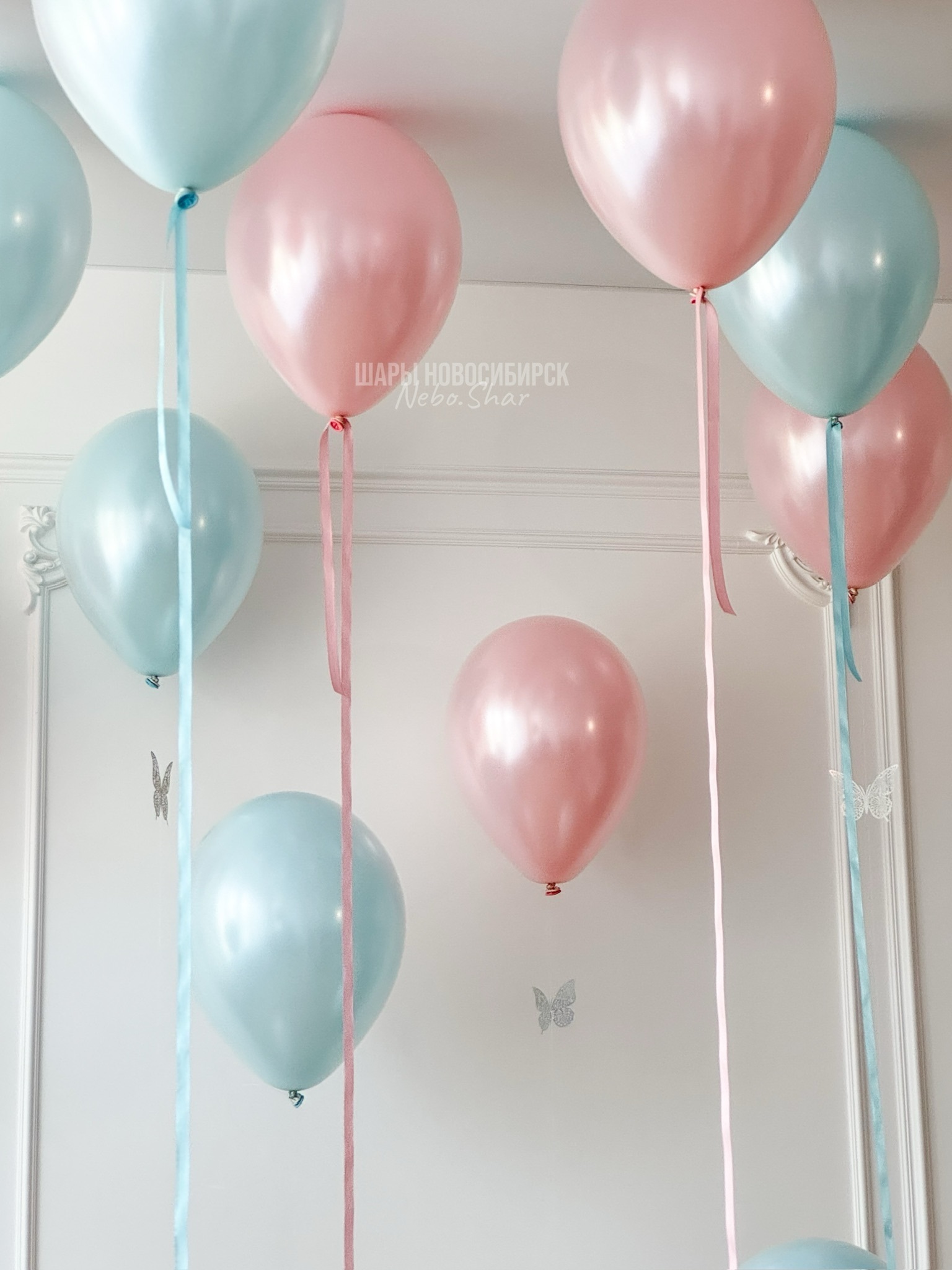 • 10 Шаров дабл стафф под потолок (бабл гам и жемчужный перламутр; голубой макарунс и жемчужный перламутр)