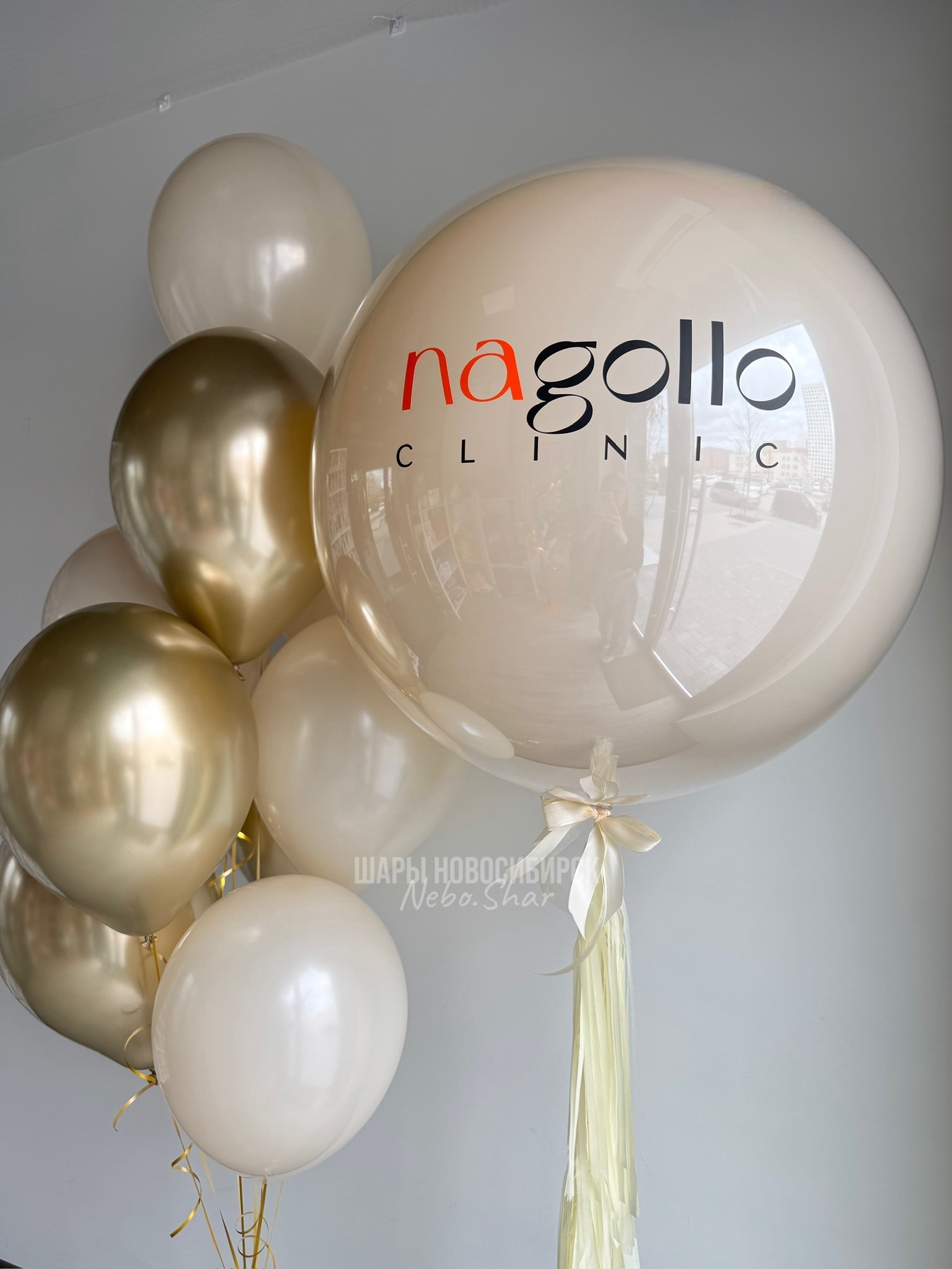 • Стеклянный шар крем 60 см с надписью (модно сделать надпись лого)