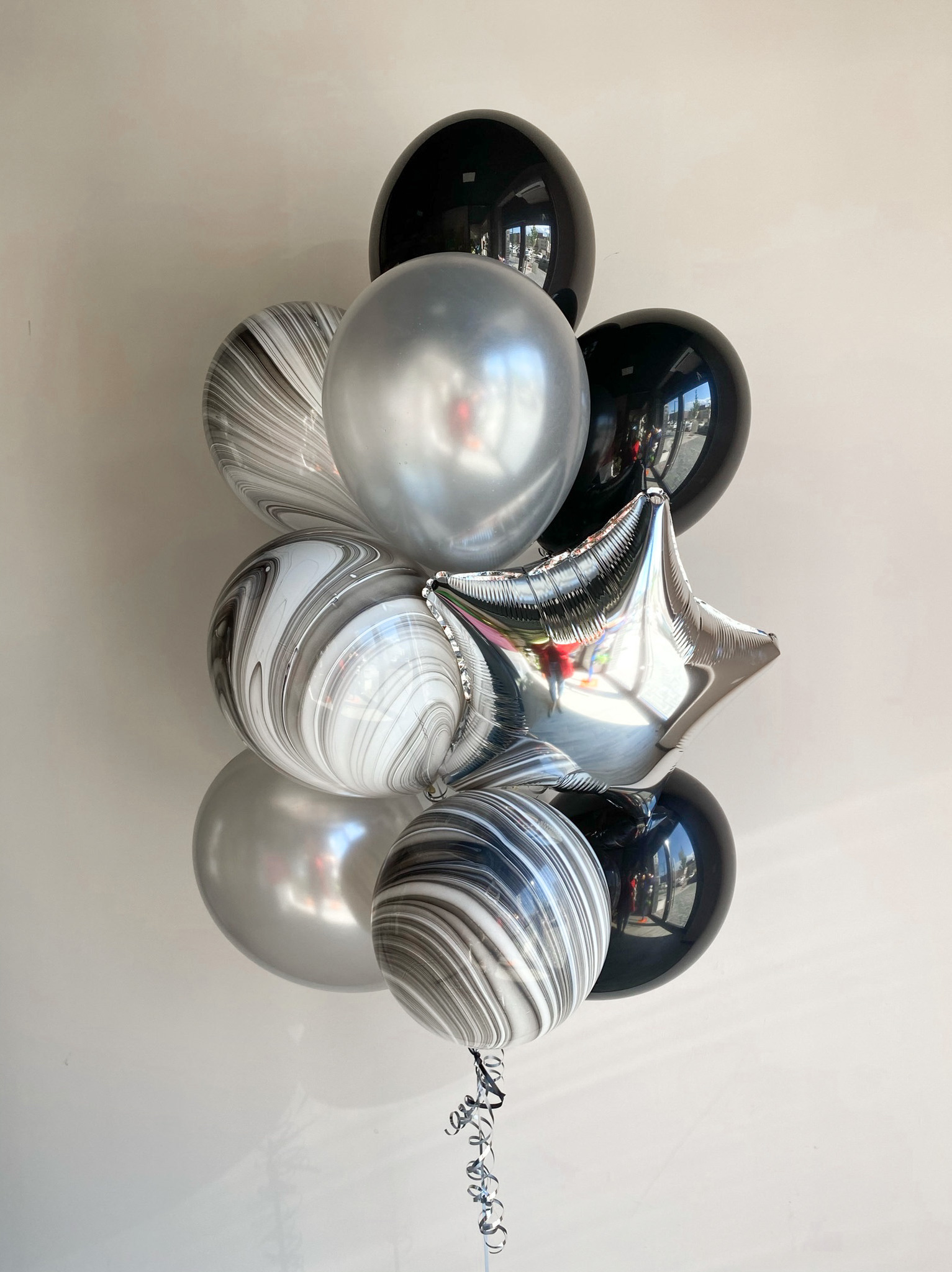 - Фонтан из 13 шаров: звезда, 3 агата и 9 однотонных