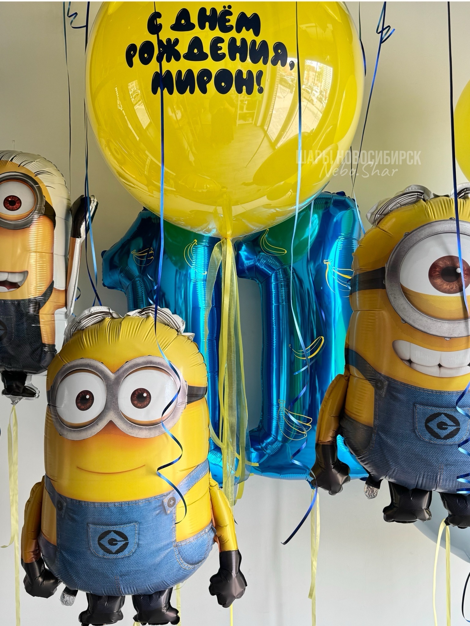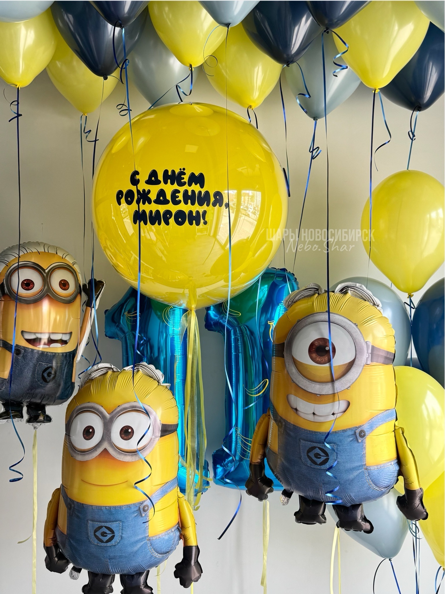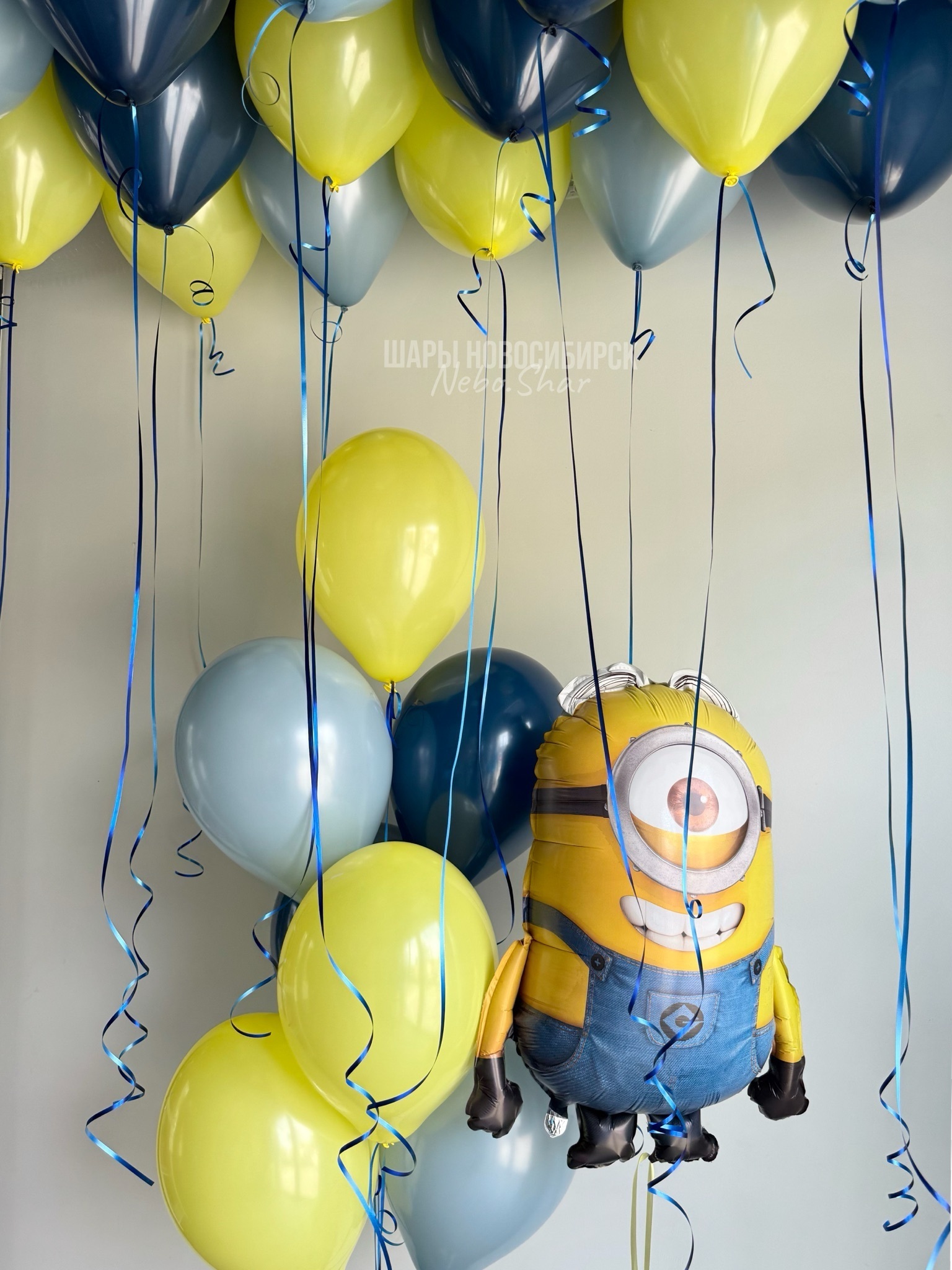 • 15 шаров под потолок (5 желтый, 5 темно-синий, 5 ретро голубой)