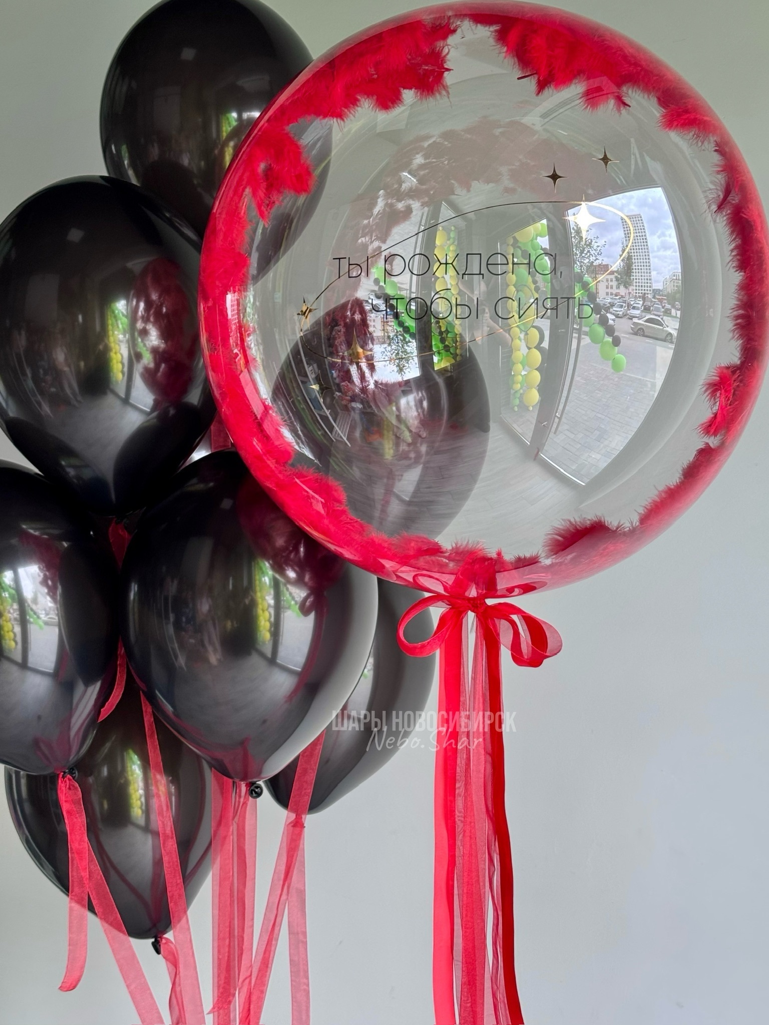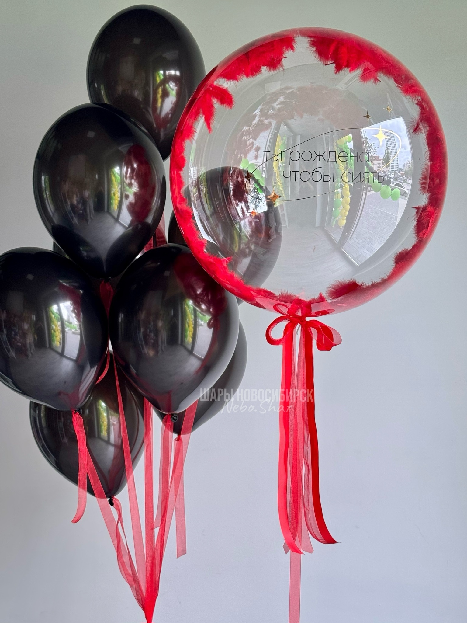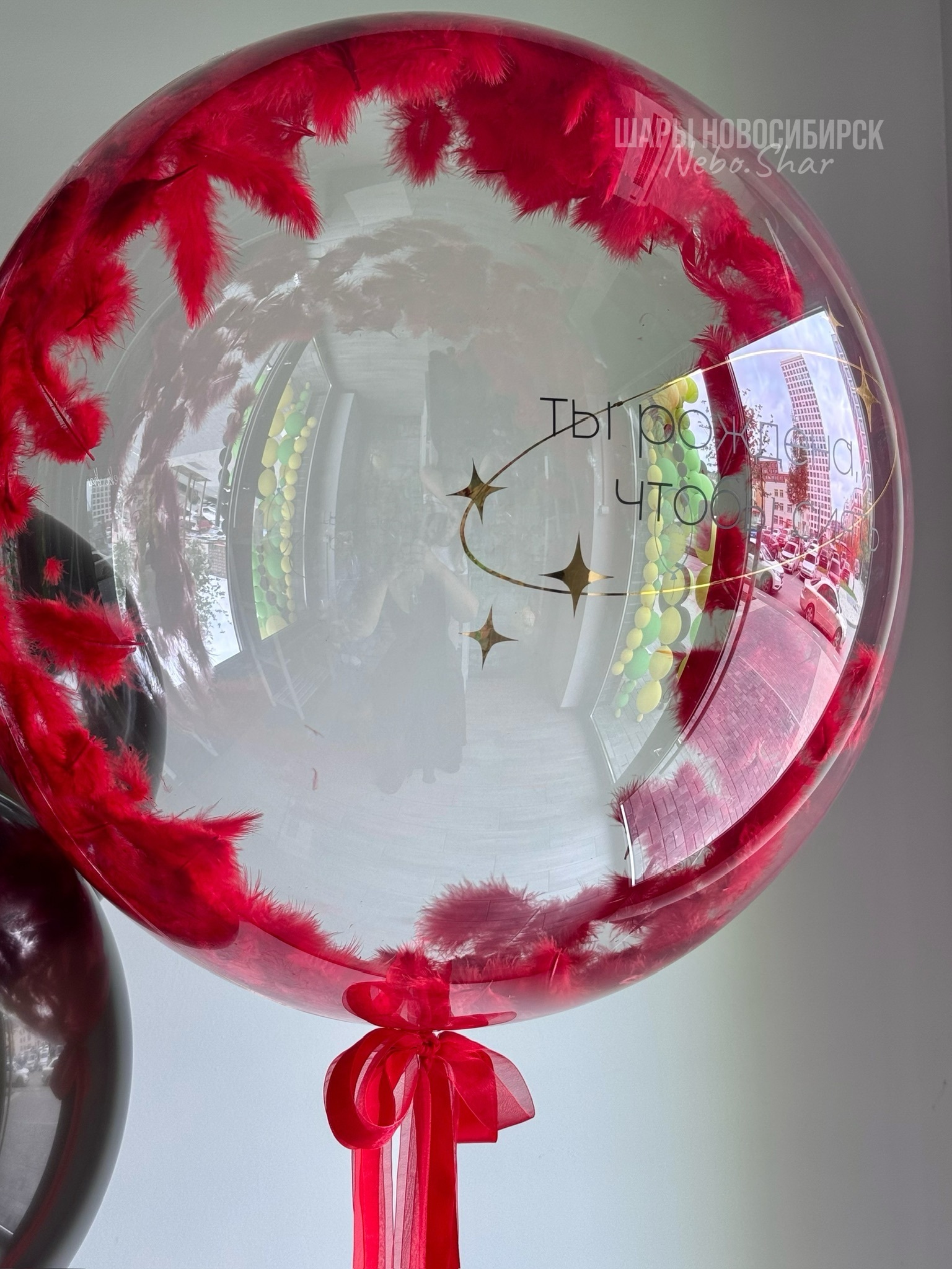 • Бабл с перьями и надписью