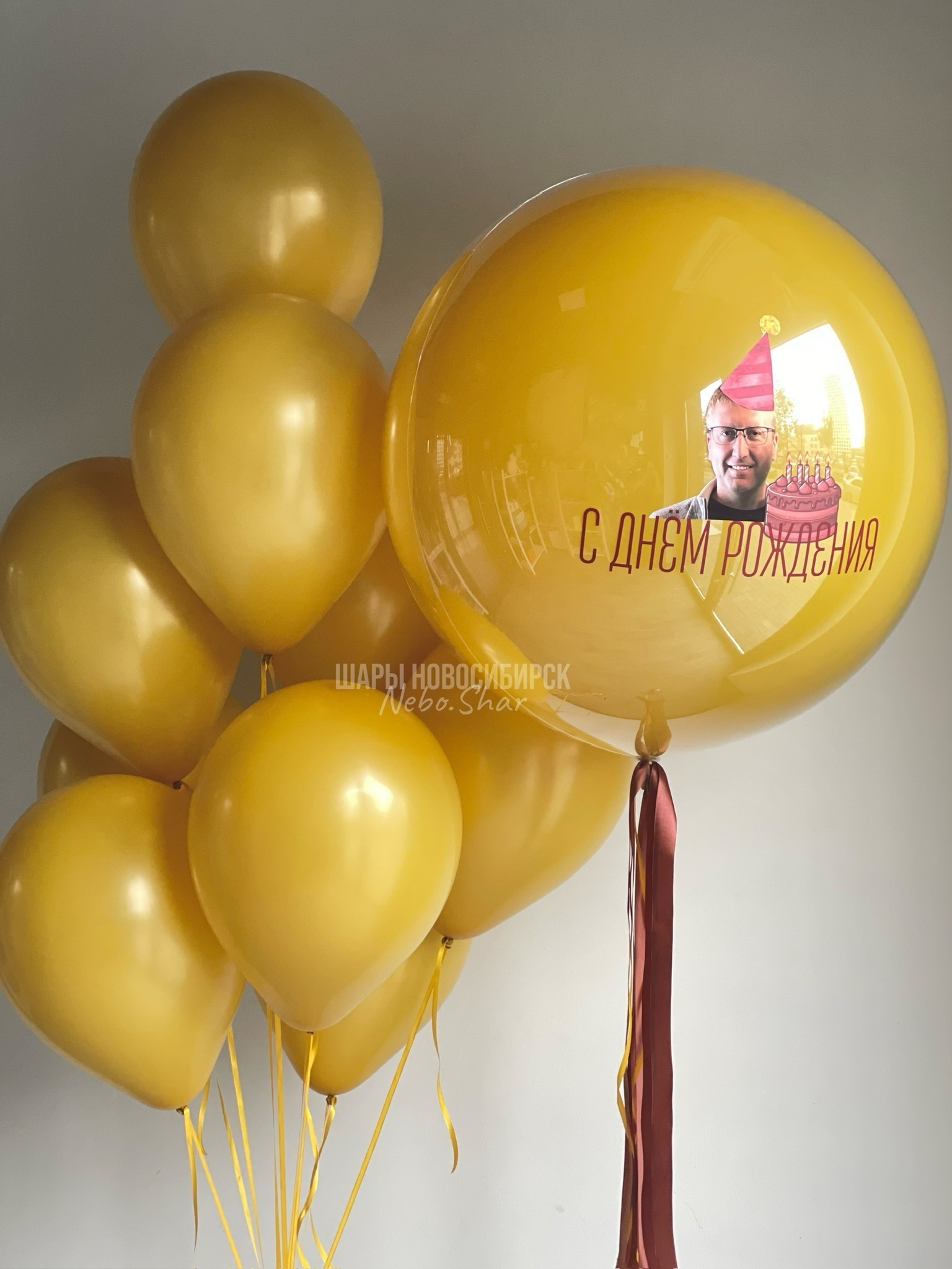 • Стеклянный горчичный шар 60 см с надписью и фото