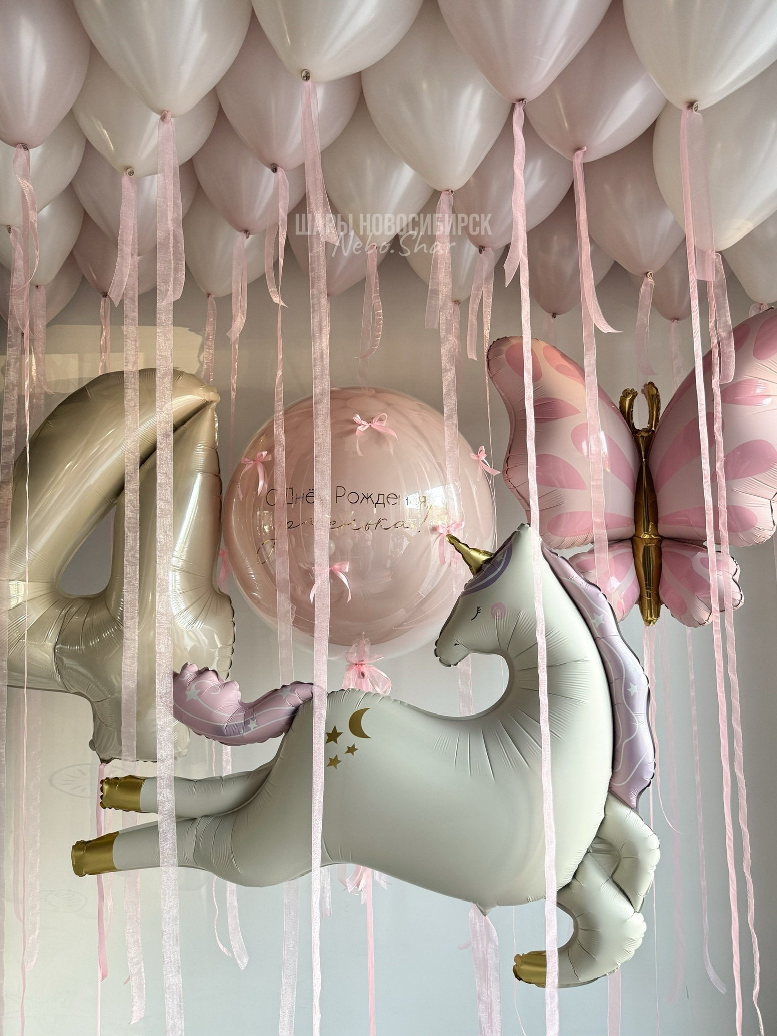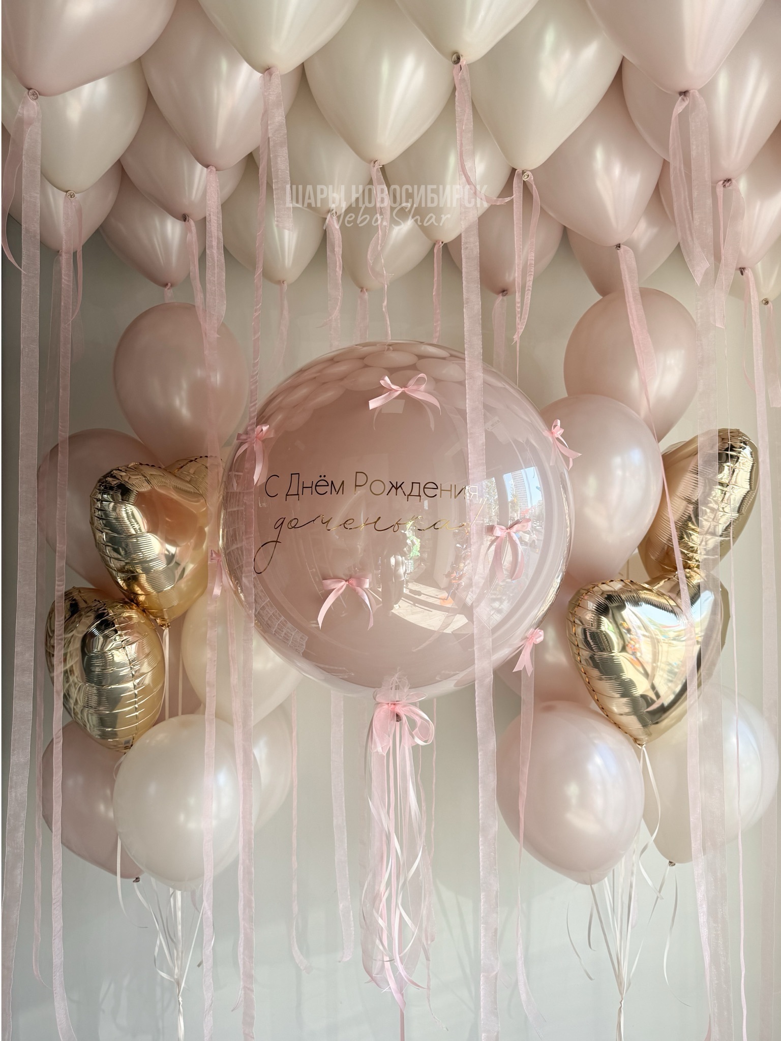 • 25 латексных Шаров под потолок (13 пыльная Роза, 12 крем)