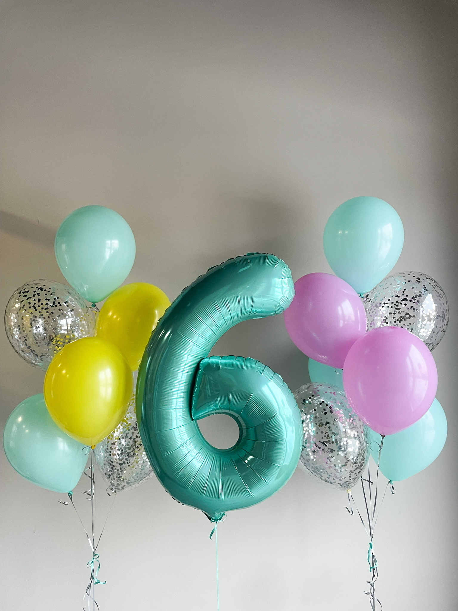 - Два Фонтана из 7 шаров: 2 с конфетти и 5 однотонных.