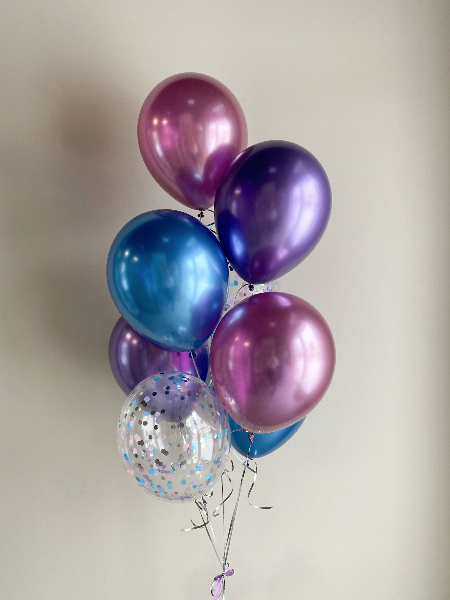 - Фонтан из 8 шаров: 2 с конфетти, 6 хром.