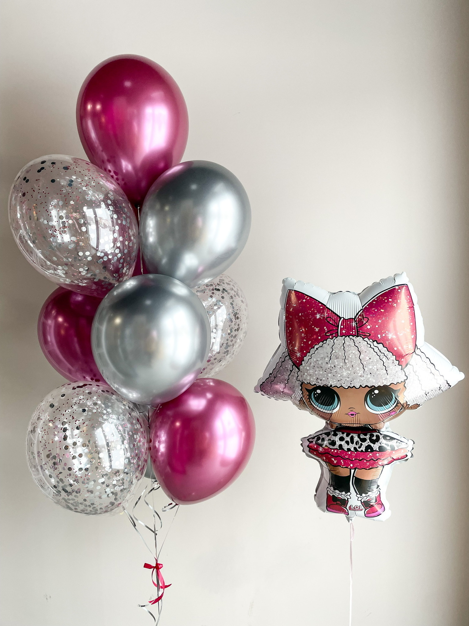 - Фонтан из 10 шаров: 3 с конфетти, 7 хром