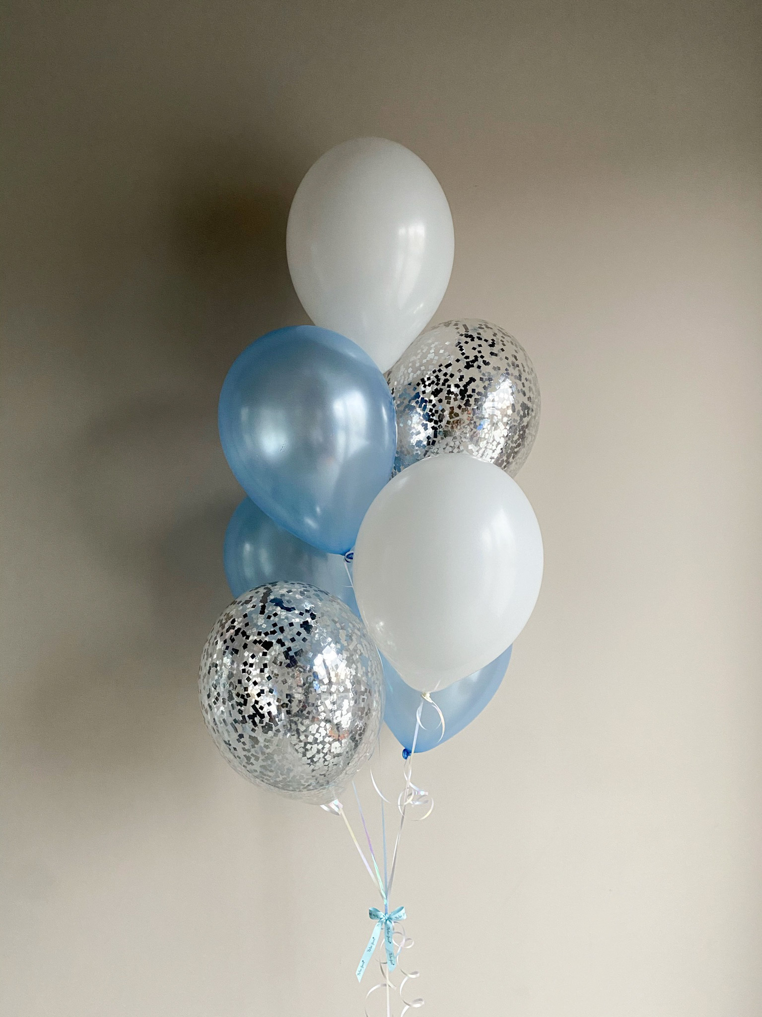- Фонтан из 7 шаров: 2 с конфетти и 5 однотонных