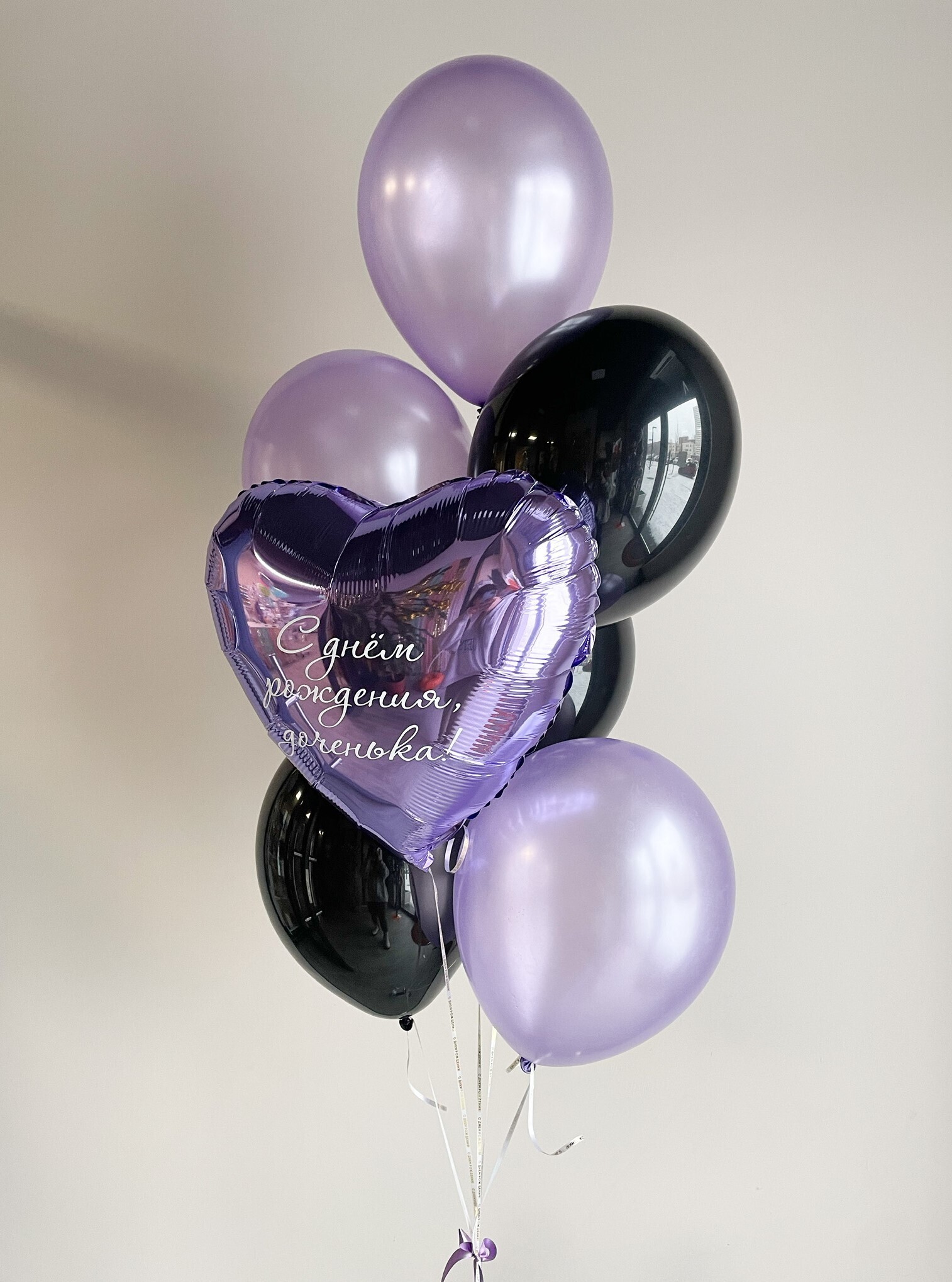 - Фонтан из 7 шаров: сердце с надписью и 6 однотонных