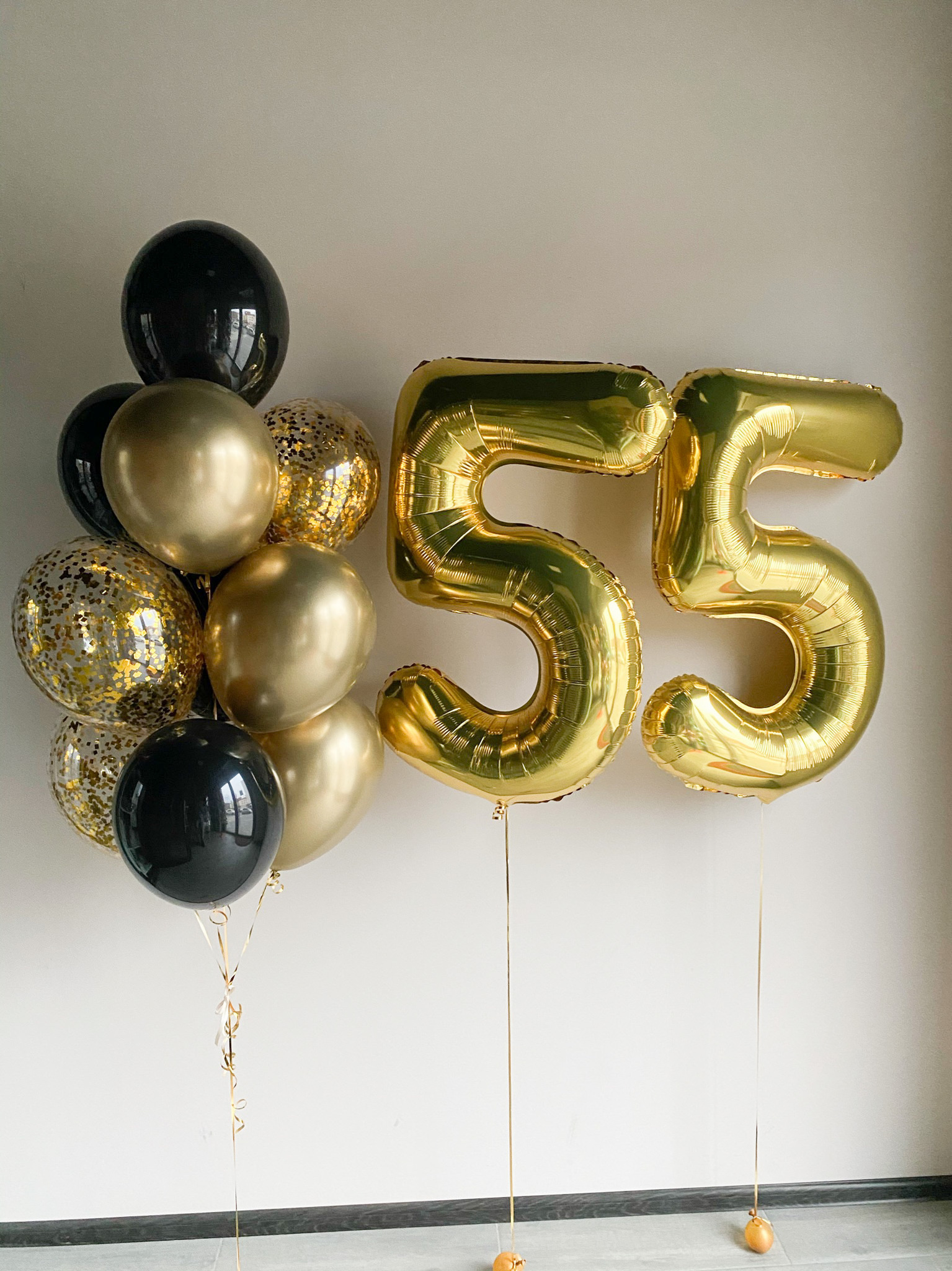 - Фонтан из 10 шаров: 3 с конфетти, 3 хром и 4 однотонных