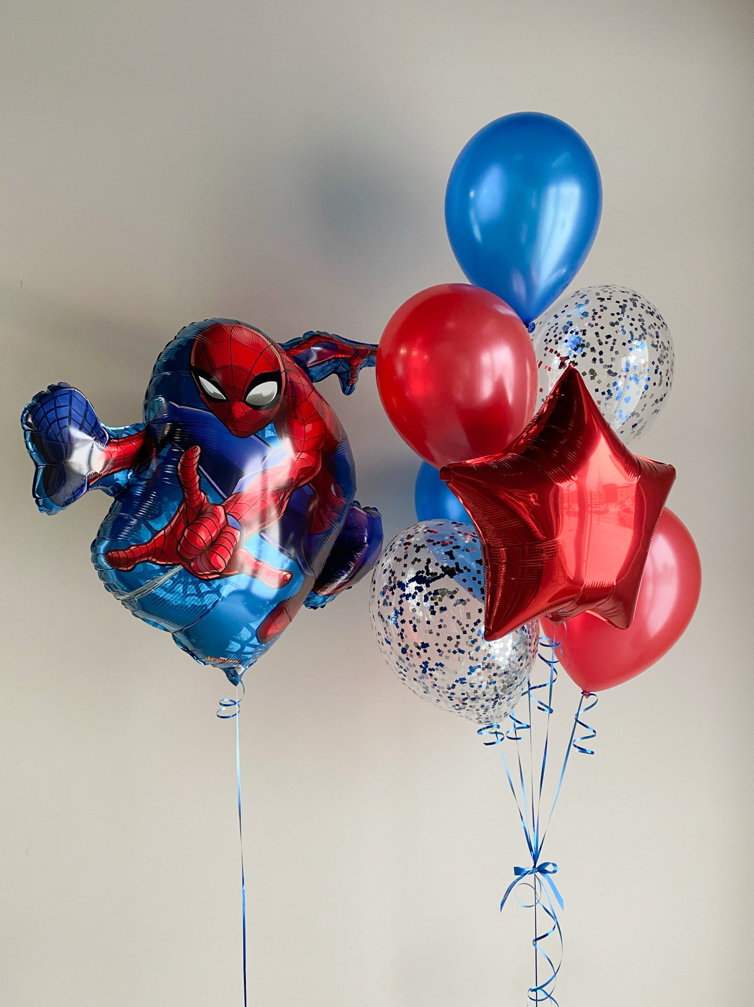 - Фонтан из 7 шаров: звезда, 2 с конфетти и 4 однотонных.
