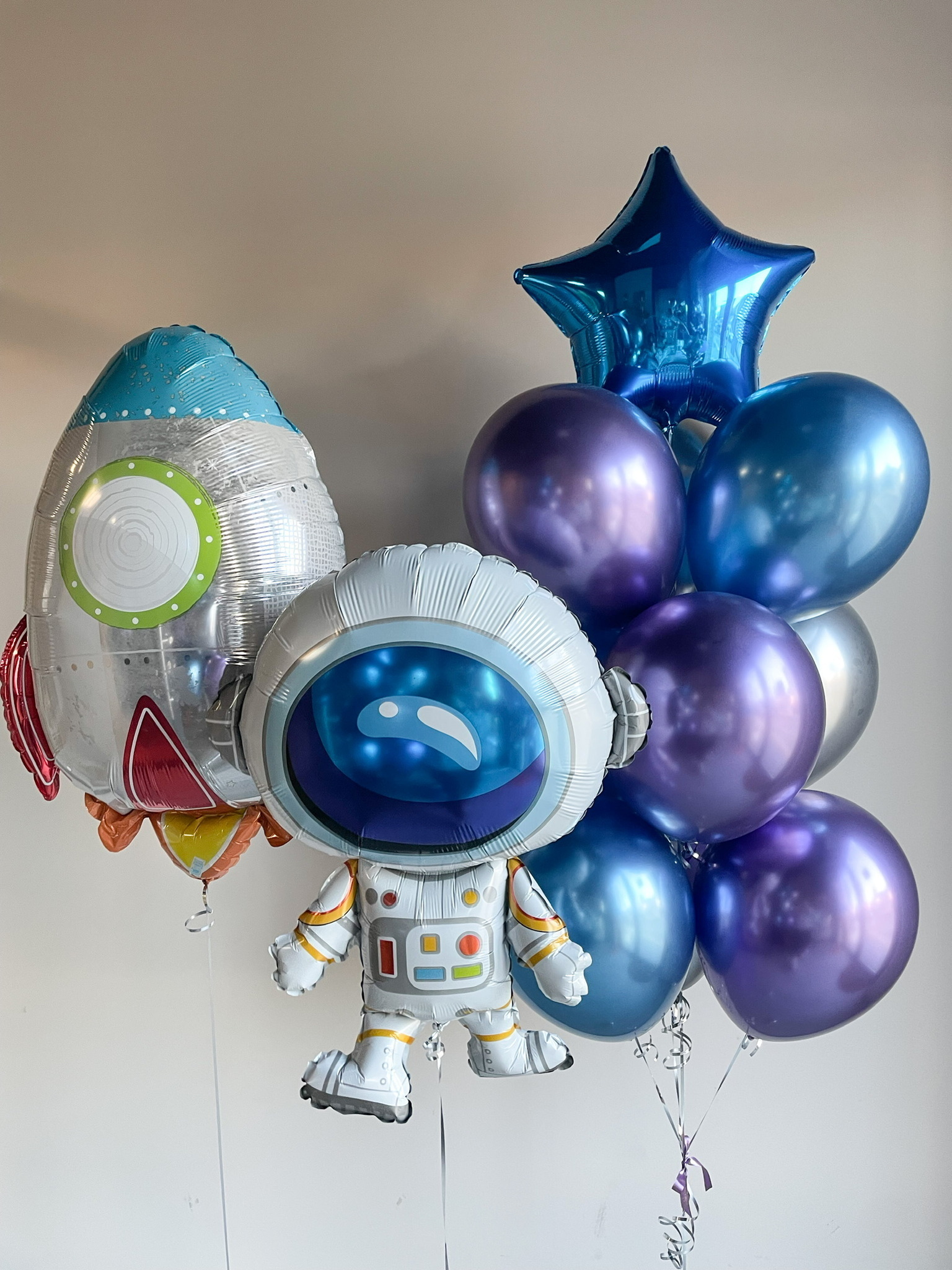- Фигурка Космонавт - Фонтан из 10 шаров: звезда и 9 хром.