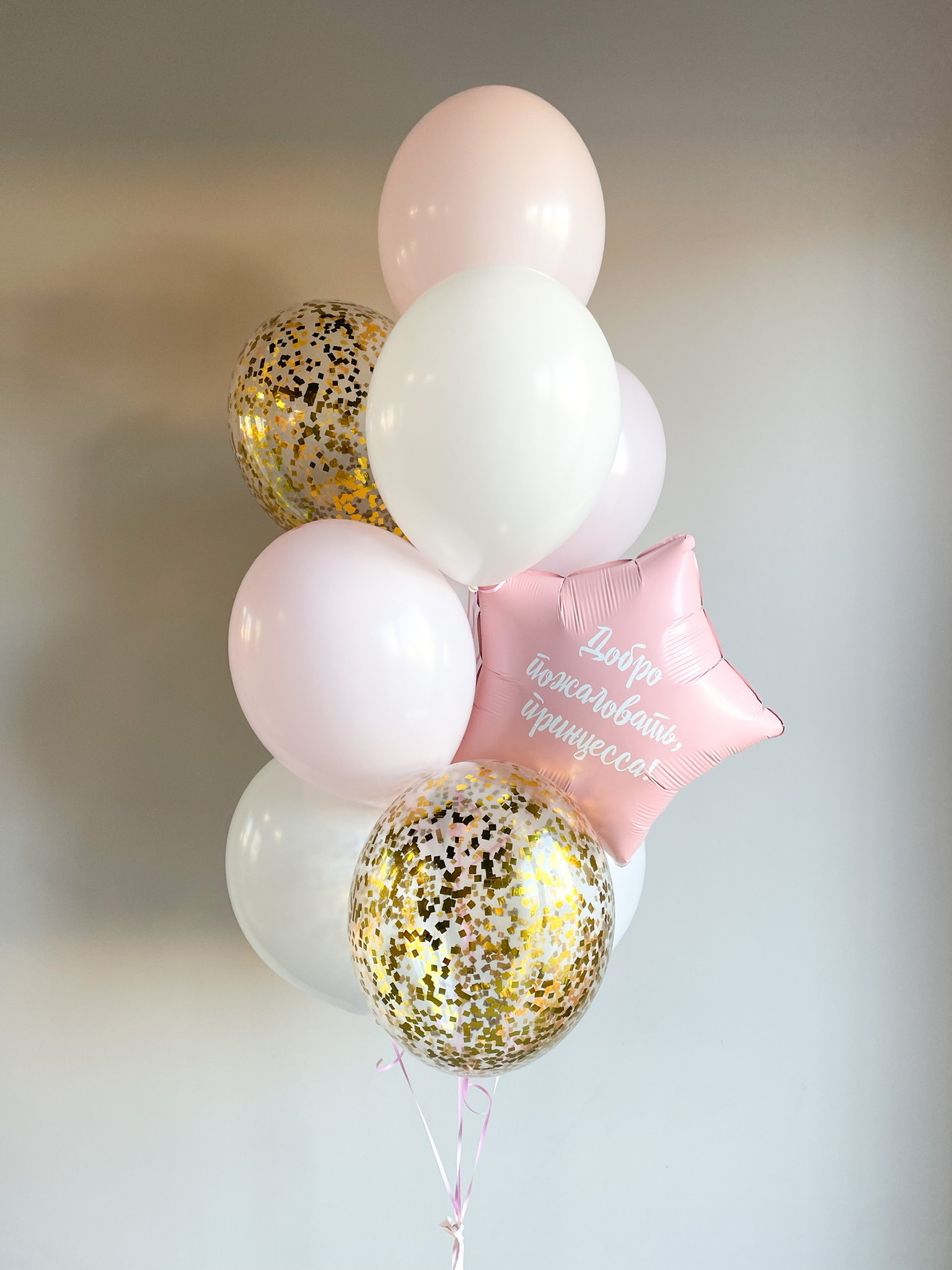 - Фонтан из 10 шаров: звезда, 2 с конфетти, 7 однотонных