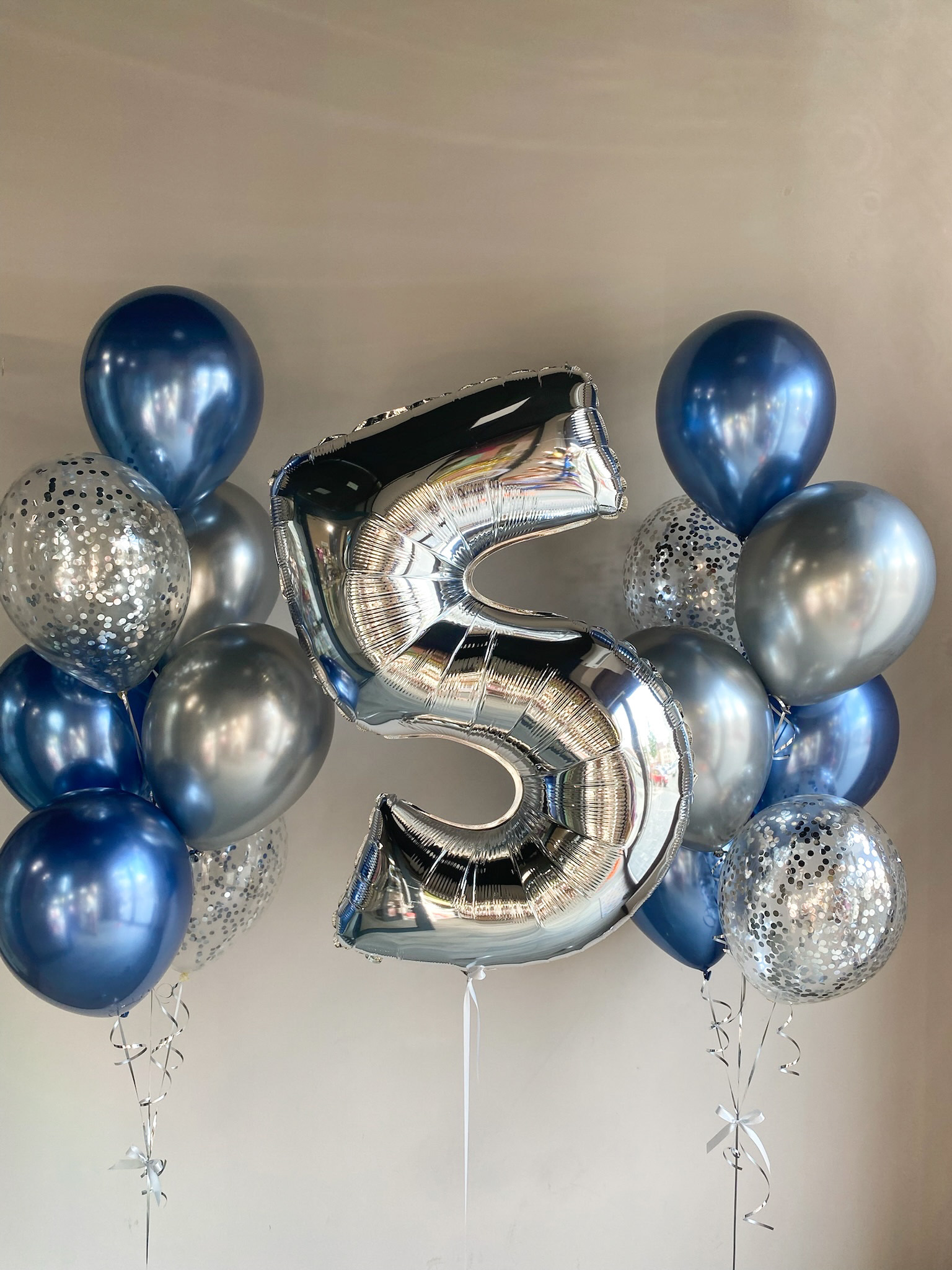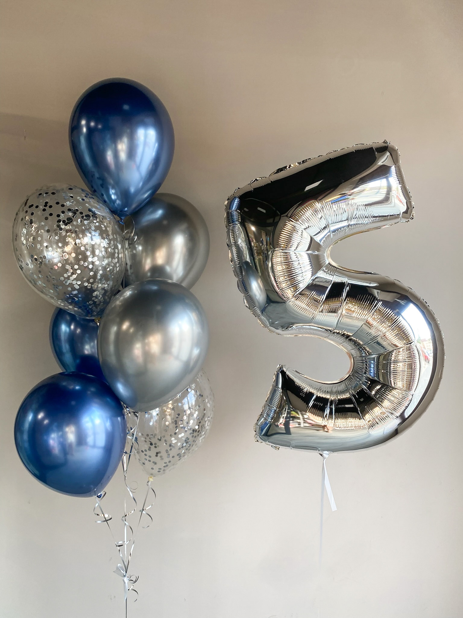 - Фонтан из 7 шаров: 2 с конфетти, 5 хром