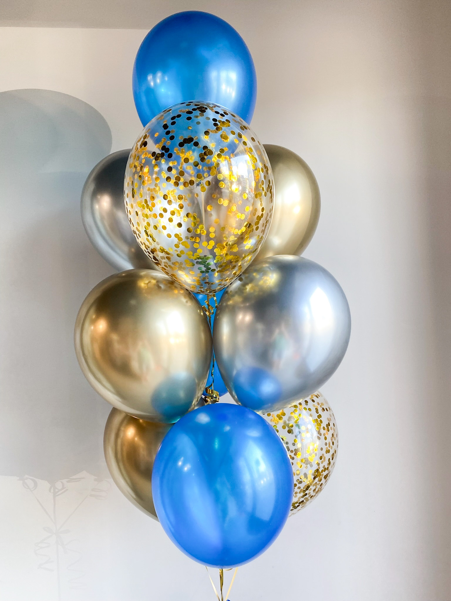 - Фонтана из 10 шаров: 2 с конфетти, 5 хром и 3 однотонных