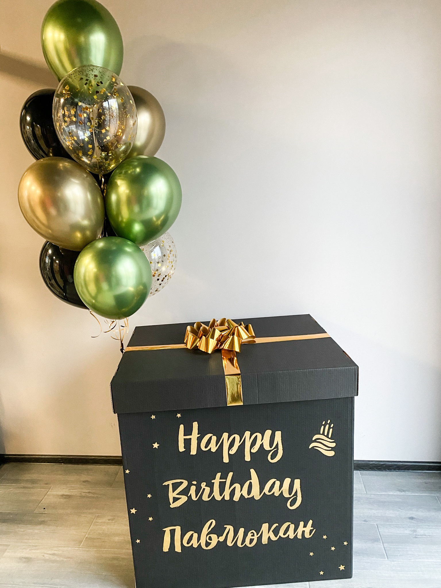 - Большая коробка с бантом и надписью